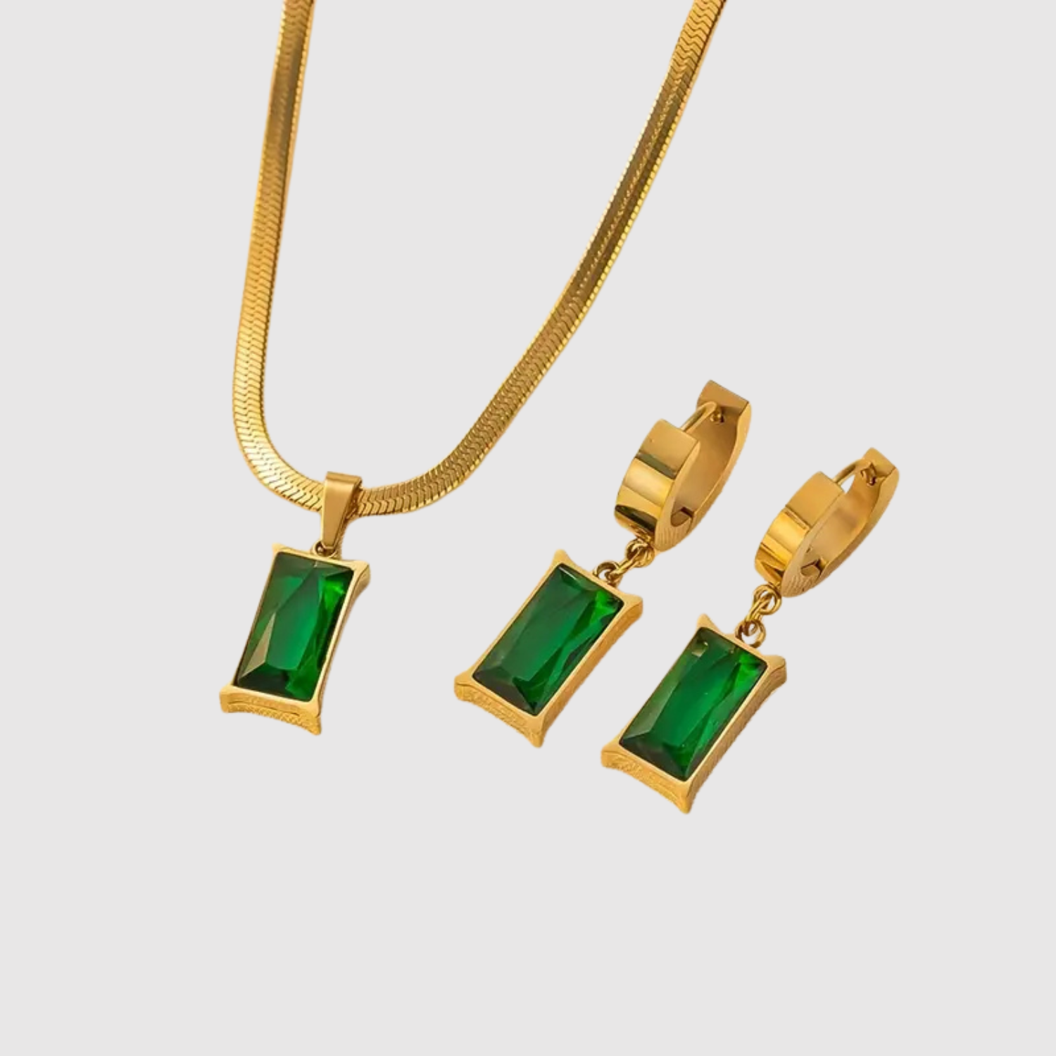 Amélie - Sada šperků „Lunara“ se zlatým povrchem a zelenými drahokamy