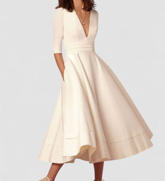 Laura | Midi šaty pro ženy s A-linií a V výstřihem