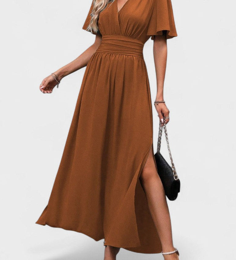 Eterna | Stylové černé maxi šaty s V-výstřihem, volnými rukávy a rozparkem