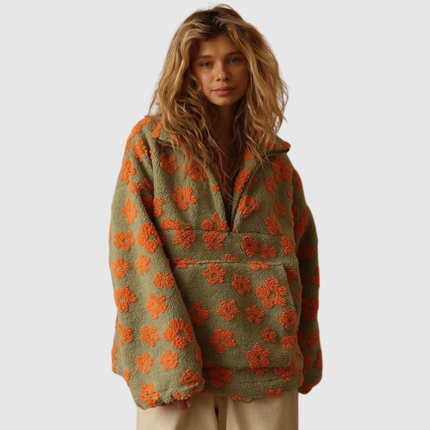 Nina - Měkký fleece s barevným potiskem a zipovým uzávěrem