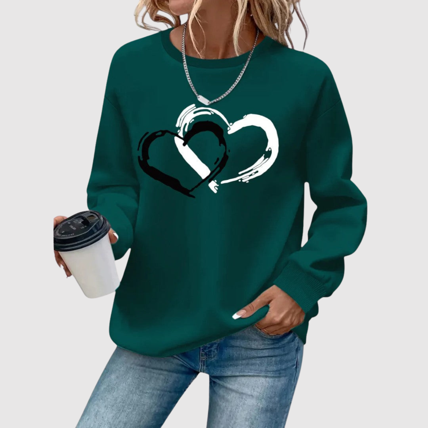 Tato mikina spojuje neformální pohodlí s okouzlujícím potiskem srdcí. Měkká kvalita ji činí perfektní pro každodenní nošení, zatímco design dodává jedinečný výraz.