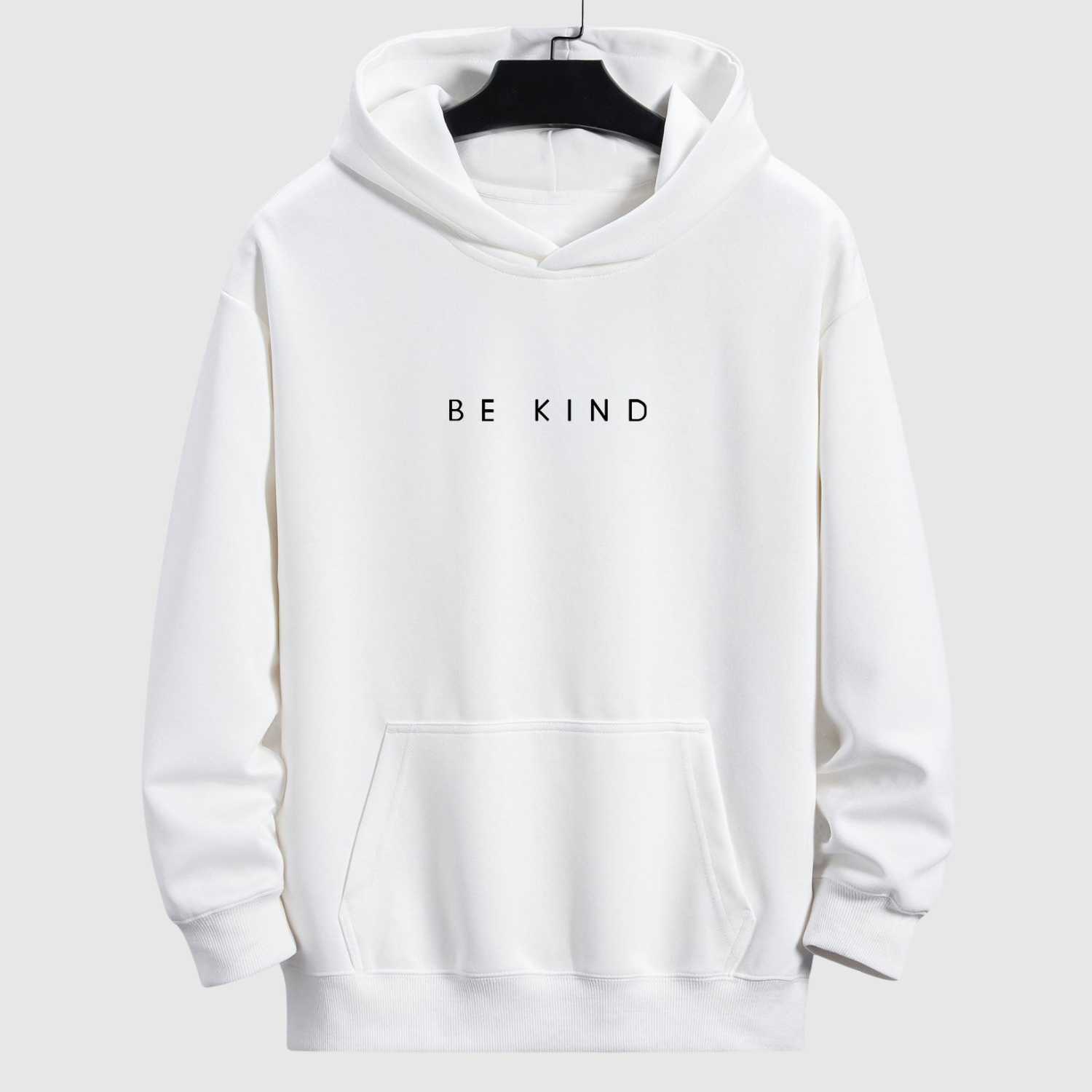 Objevte věčnou mikinu, která spojuje pohodlí a jednoduchost. Vyrobena z měkké bavlny s minimalistickým textem “Buď hodný”, dodává moderní a smysluplný výraz. Ideální pro každodenní nošení a neformální outfity.