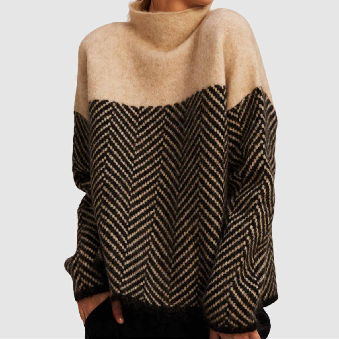 Nora – Volný svetr s vysokým límcem a strukturovaným designem