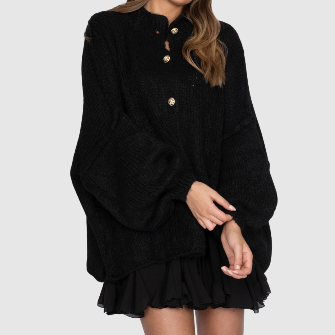 Nora – Elegantní pletený svetr s módními knoflíky