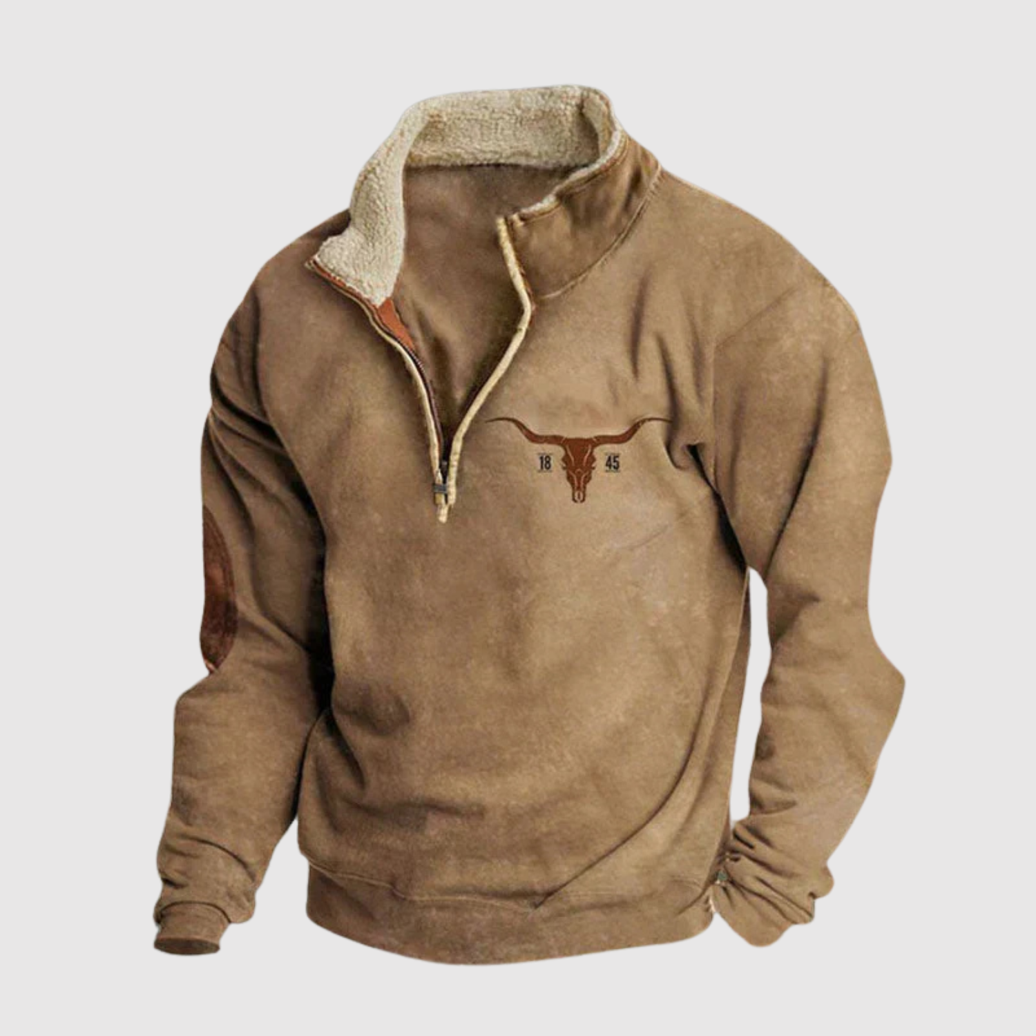 Objevte naši teplou a stylovou mikinu se zipem u krku, která se pyšní detailními vzory na rukávech. Kombinace jednobarevného těla a etnických motivů vytváří pozoruhodný a moderní vzhled, ideální pro zimní a podzimní dny.