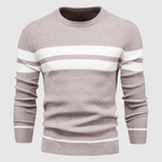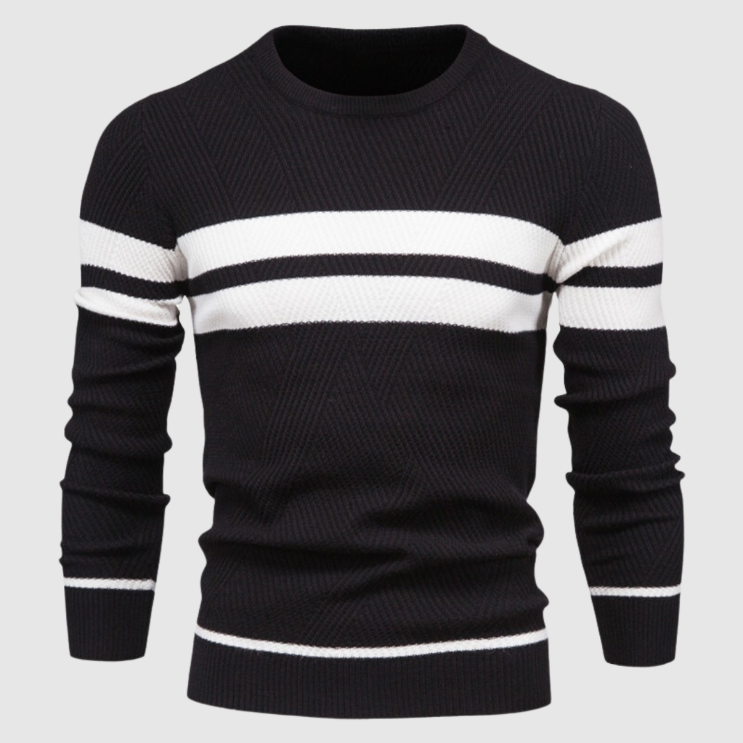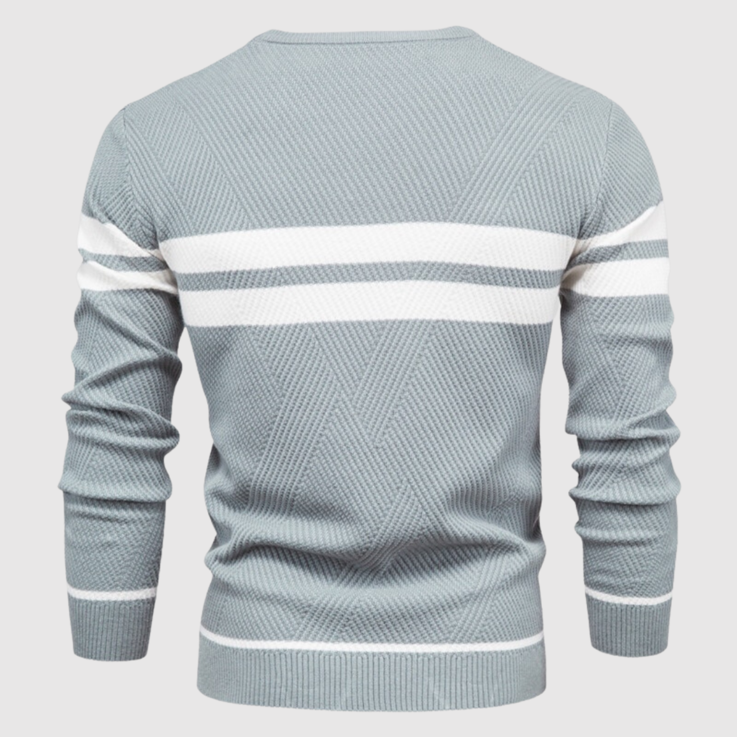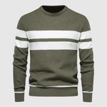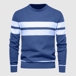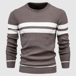 Objevte náš věčný pulovr s dvojitými horizontálními pruhy, který dodává sportovní a moderní vzhled. Ideální pro každodenní nošení, ale dostatečně stylový pro méně formální setkání.