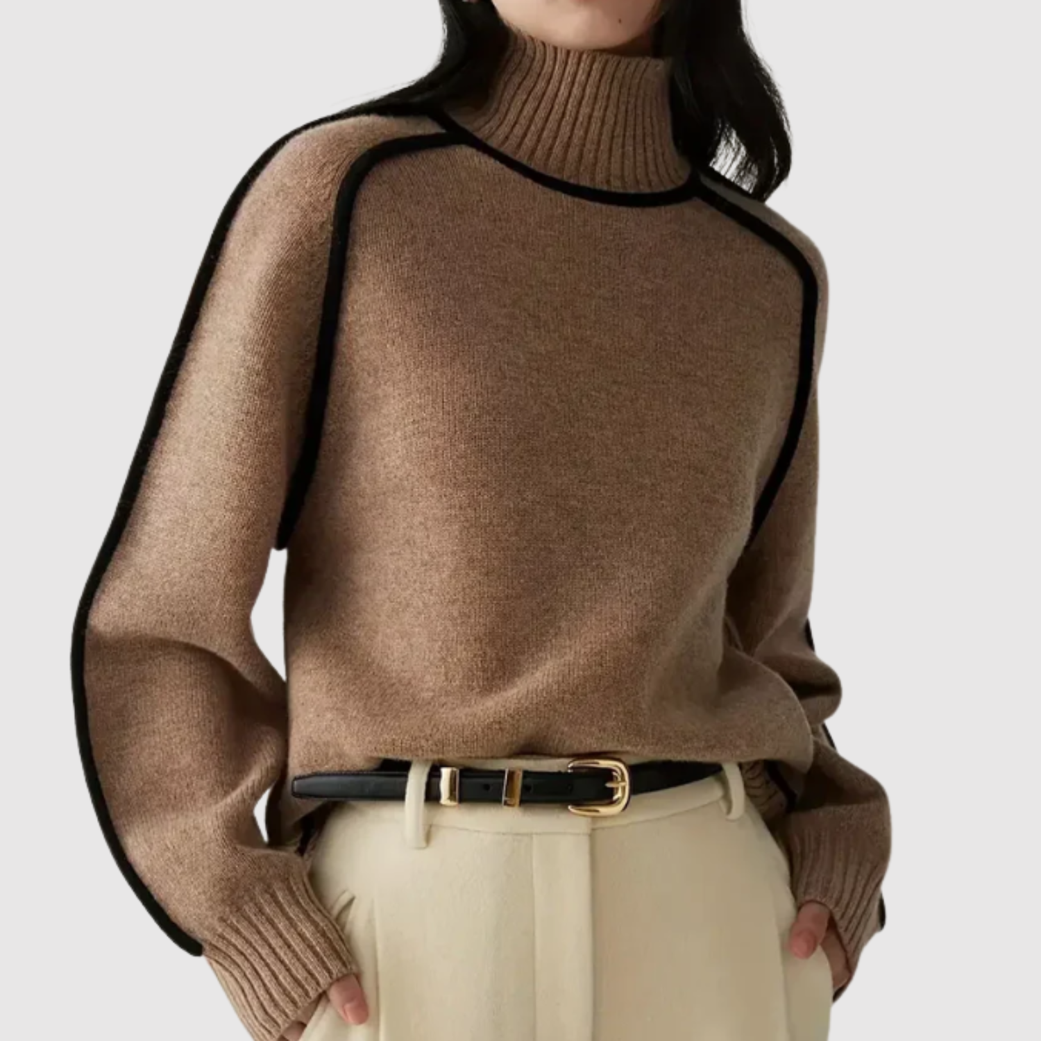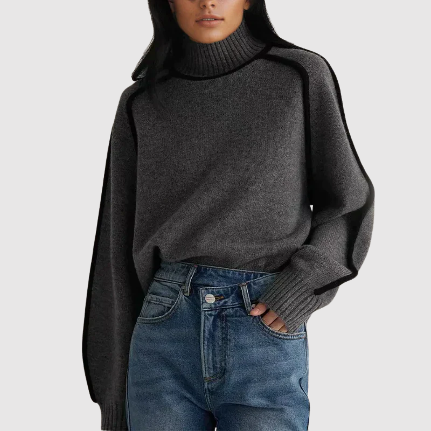 Tento sofistikovaný svetr ohromuje minimalistickým designem a stylovými kontrastními lemy. Vyrobený z měkkého, hustého materiálu, poskytuje teplo a komfort v chladných dnech. Ideální volba pro městský elegantní styl nebo každodenní vzhled s třídou.