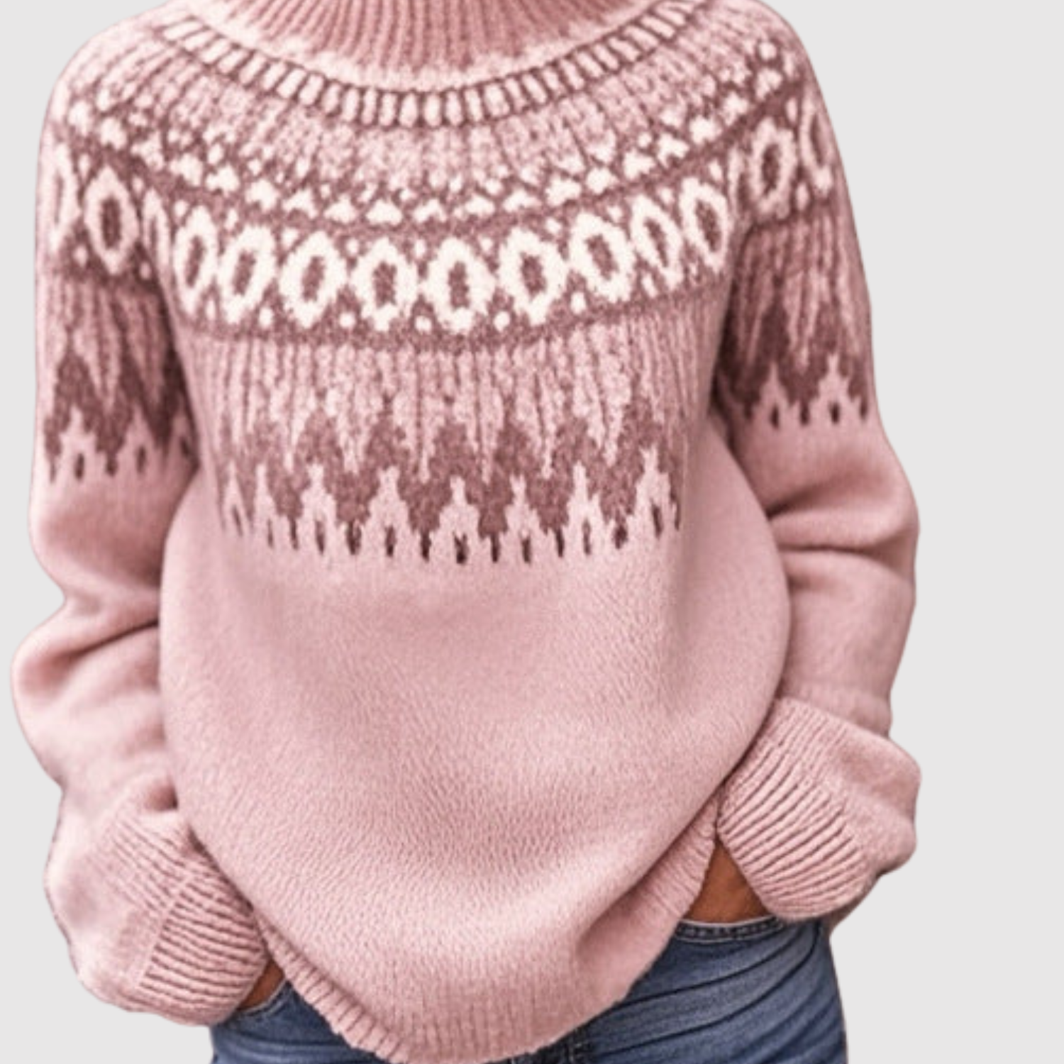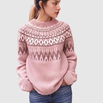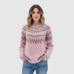 Nora – Teplý svetr v růžové s nordickými vzory
