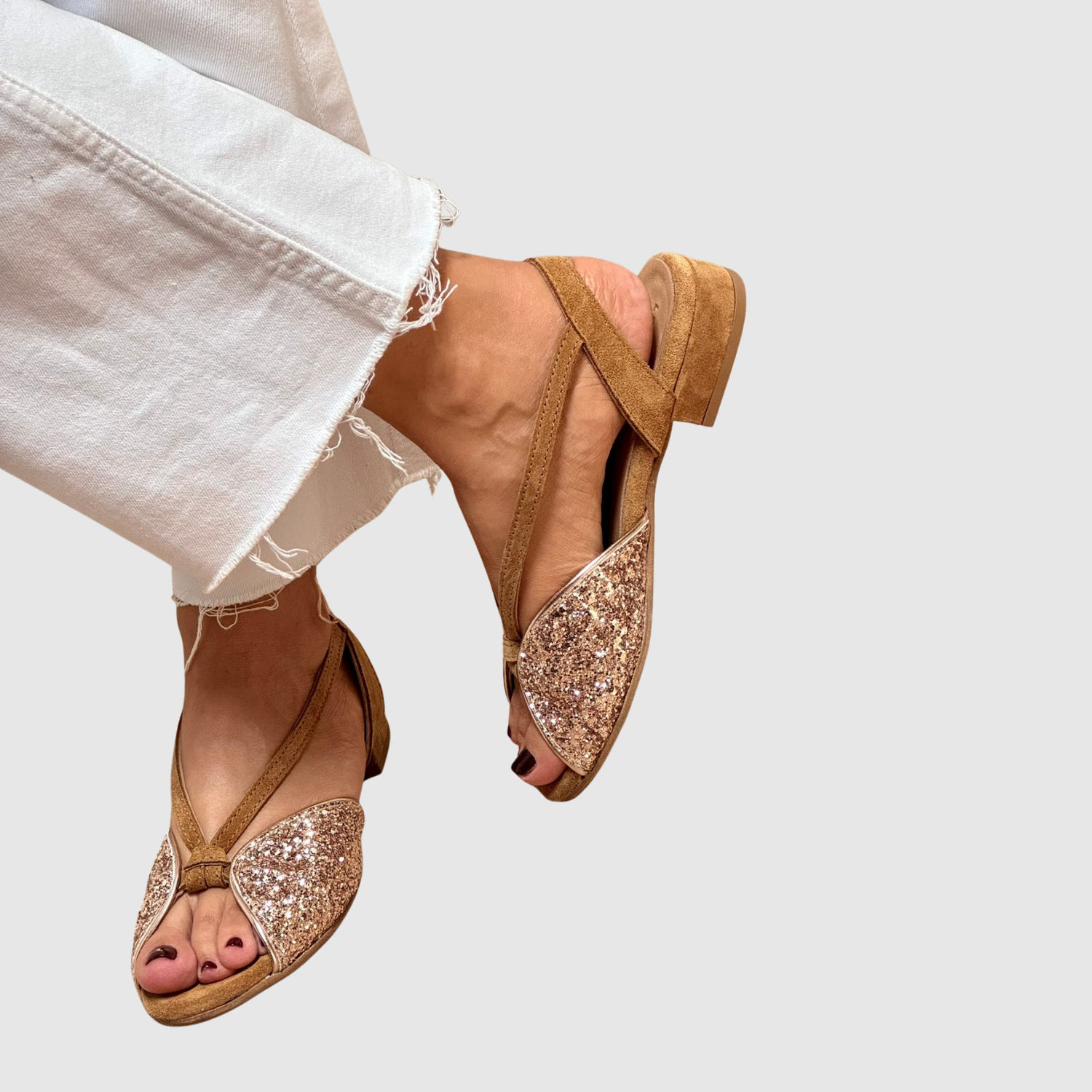 Teodora - Sandály s křížovými pásky a zlatým akcentem