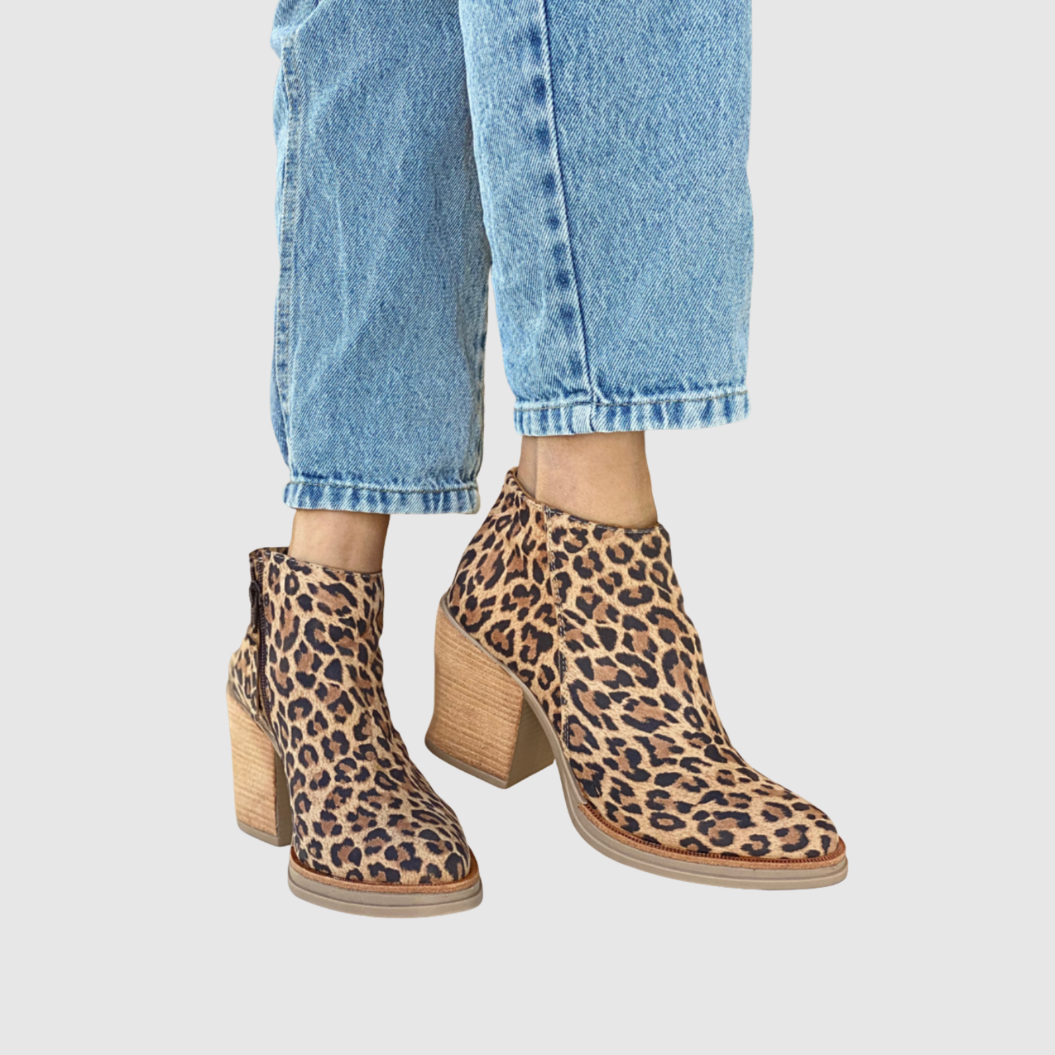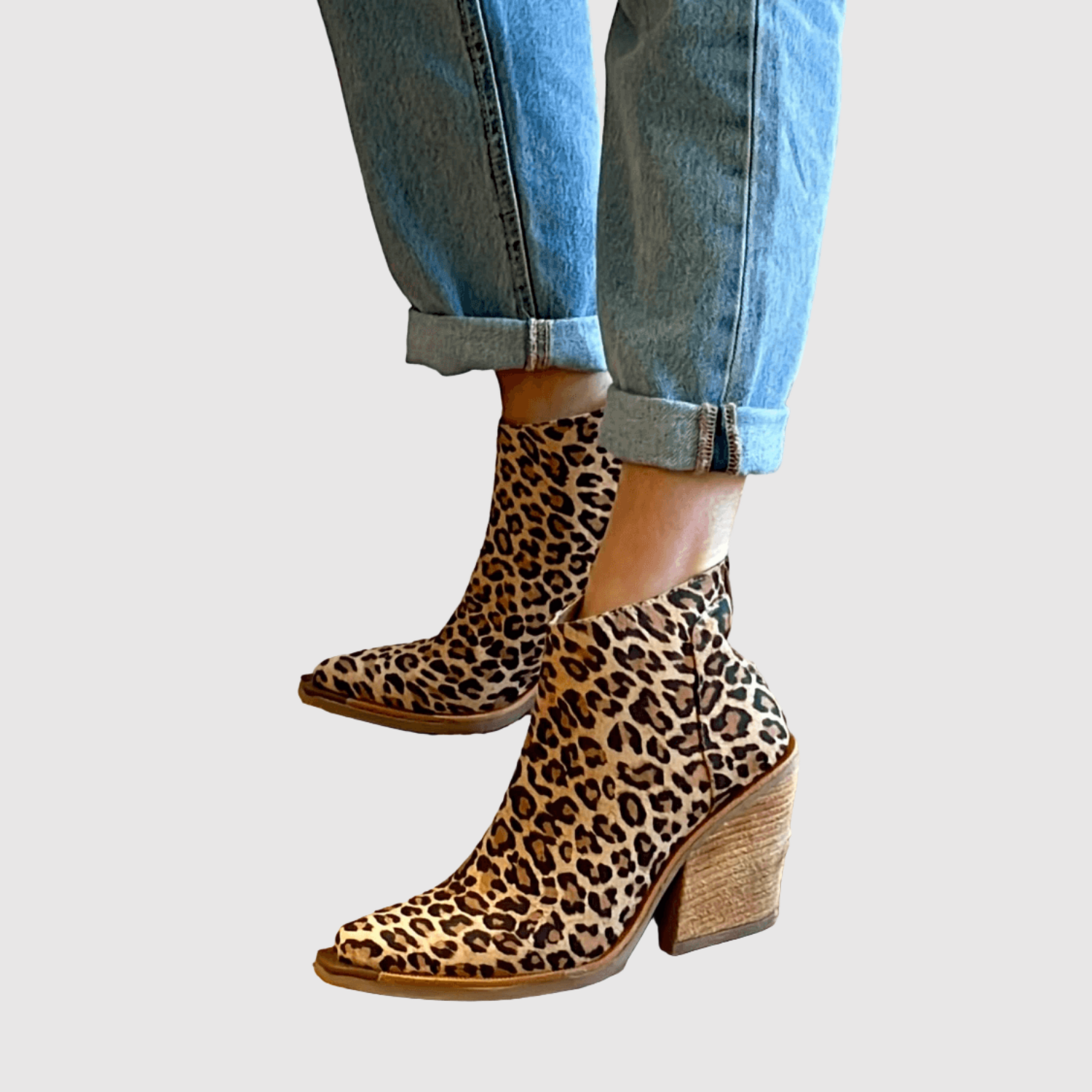 Teodora - Sandály s leopardím vzorem a širokým podpatkem