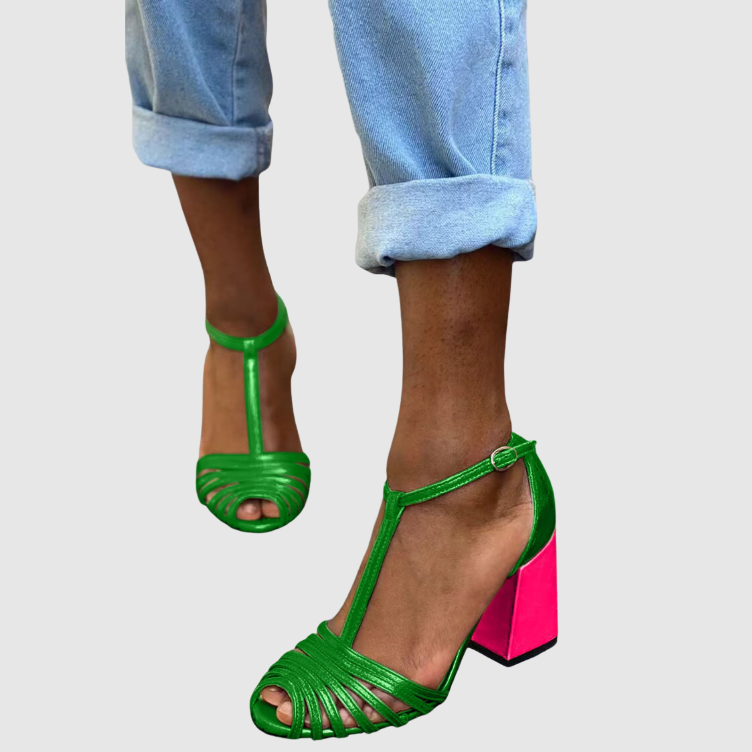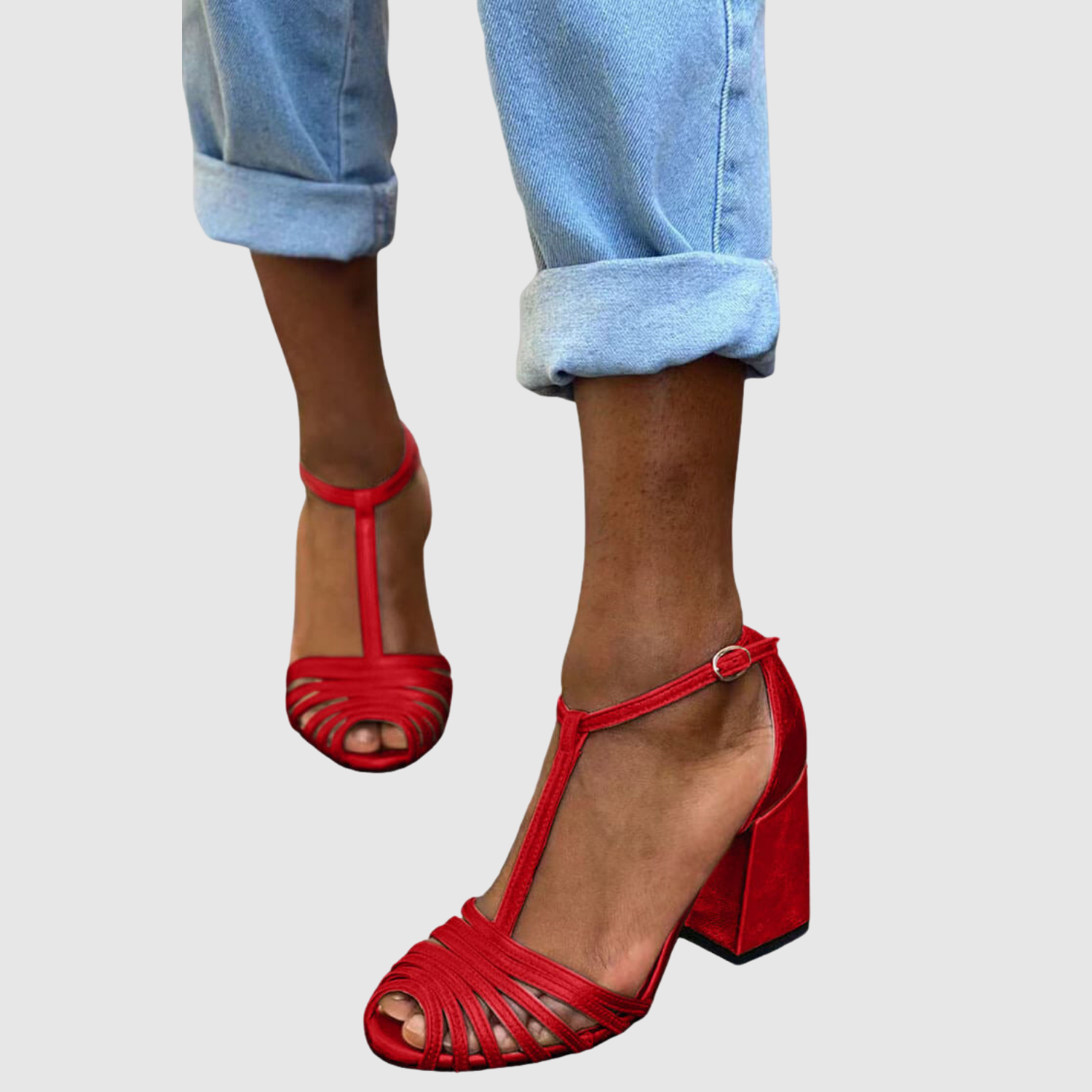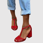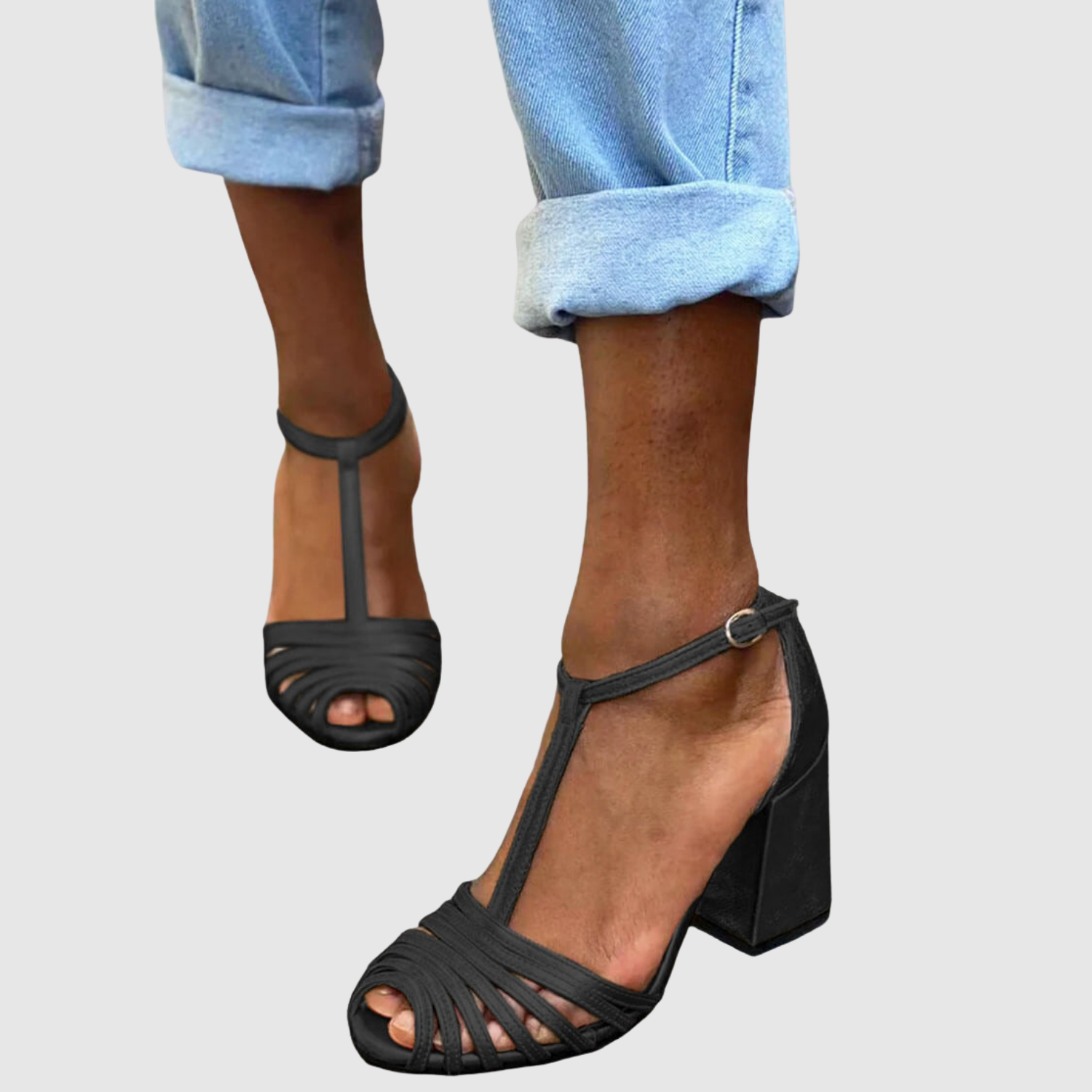 - Stabilní blokový podpatek pro komfort a bezpečnost
