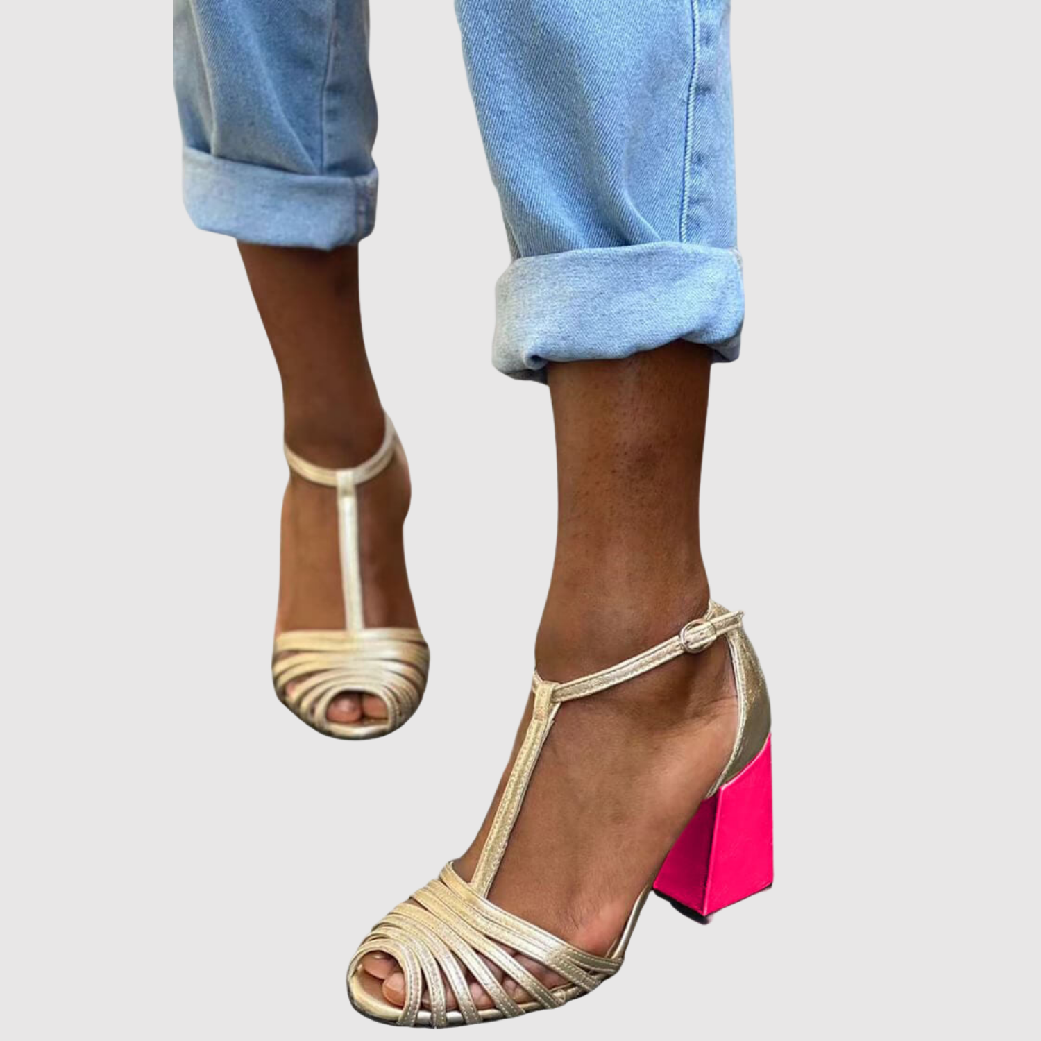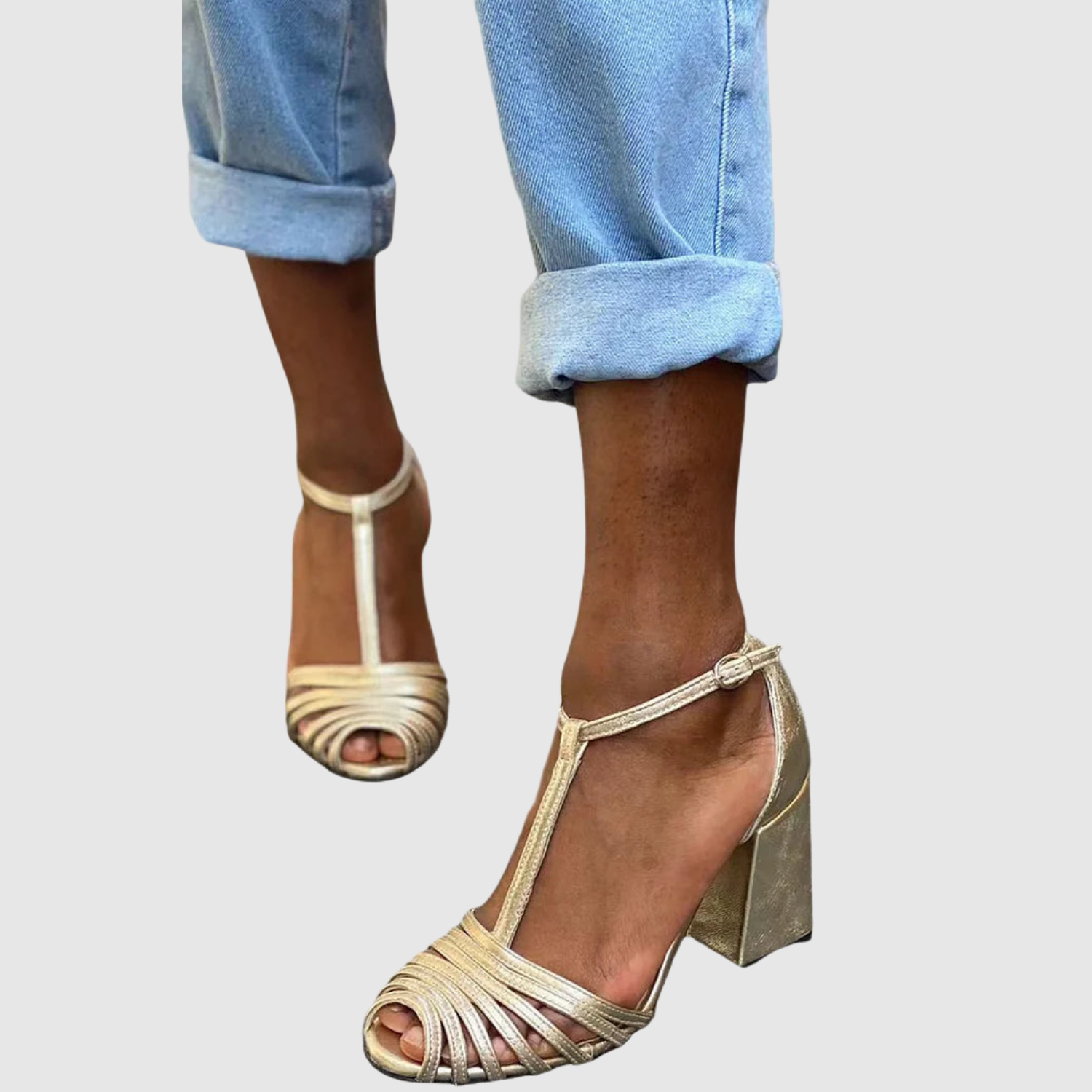 Objevte naše sandály, které kombinují luxusní metalický vzhled se stabilitou a komfortem. Křížový pásek zvýrazňuje nohu, zatímco solidní blokový podpatek zajišťuje oporu a sebevědomí. Ideální volba na večerní vycházky a speciální příležitosti.