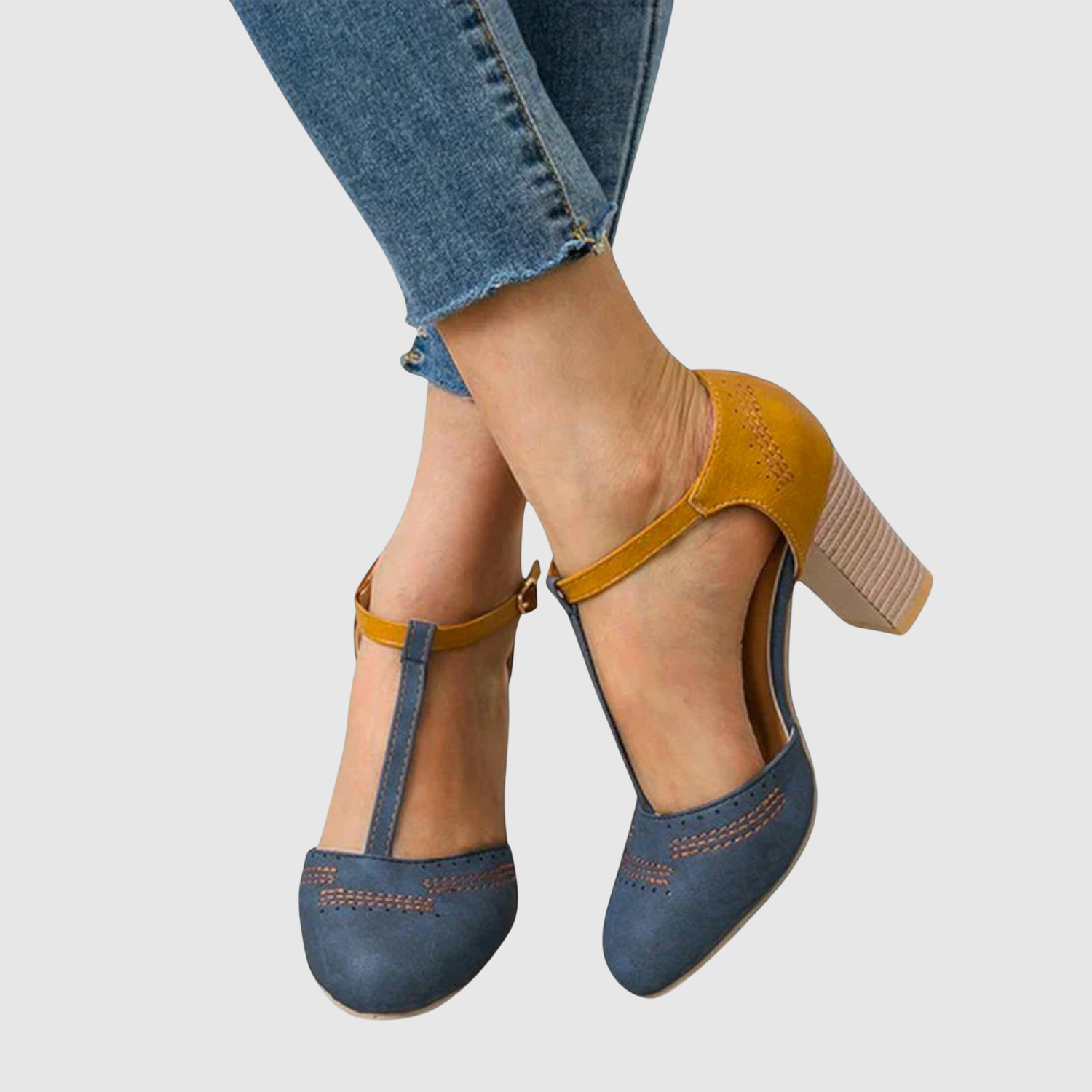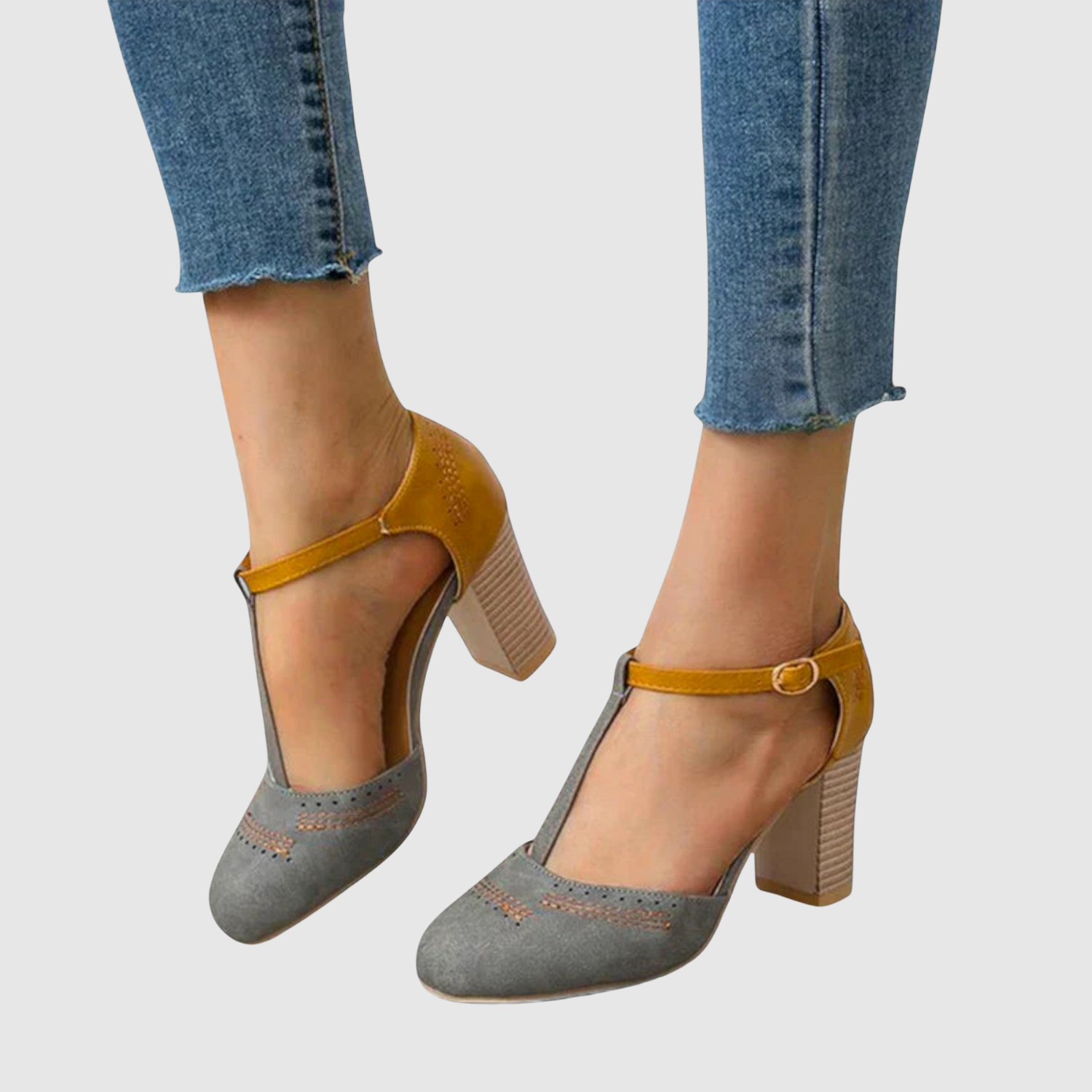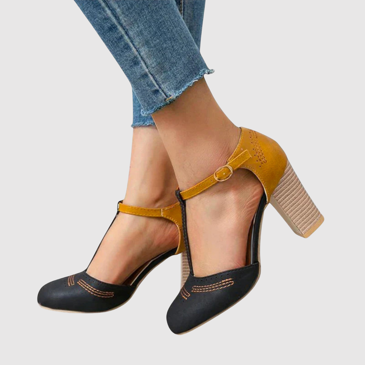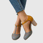 - Stabilní blokový podpatek pro celodenní pohodlí