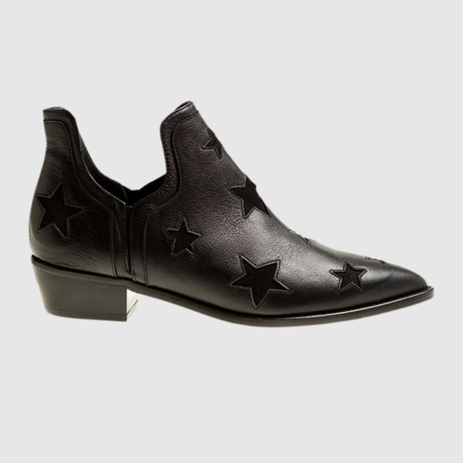 Objevte naše černé kožené boty, které kombinují ostrý vzhled s výrazným reliéfním hvězdným motivem. Nízký podpatek zajišťuje komfort a stabilitu pro každodenní nošení, zatímco elegantní špička dodává šmrnc. Ideální volba pro denní i večerní outfity.