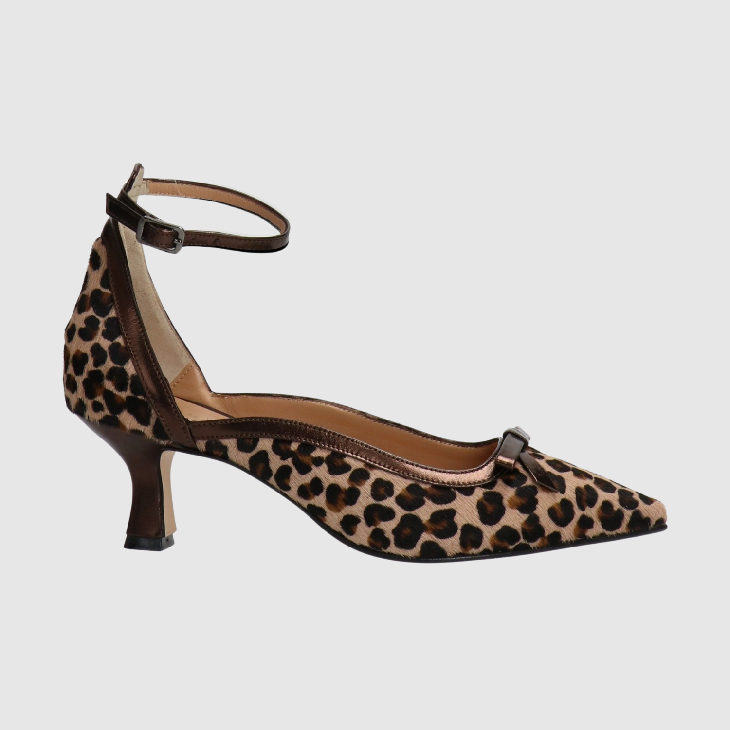 Objevte naše lodičky s leopardím potiskem, které dokonale kombinují odvážné vyzařování s ženskou elegancí. Tenký pásek kolem kotníku zajišťuje stabilitu, zatímco nízký podpatek garantuje pohodlí po celý den. Diskrétní mašlička vpředu dodává elegantní finiš.