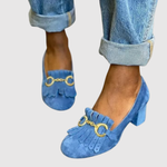 Objevte živé barvy kombinované s elegantním zlatým zapínáním a dekorativními třásněmi, které vytvářejí stylový a moderní vzhled. Naše podpatky nabízejí stabilní podrážku pro pohodlí po celý den, což je činí ideálními pro každodenní nošení i speciální příležitosti.