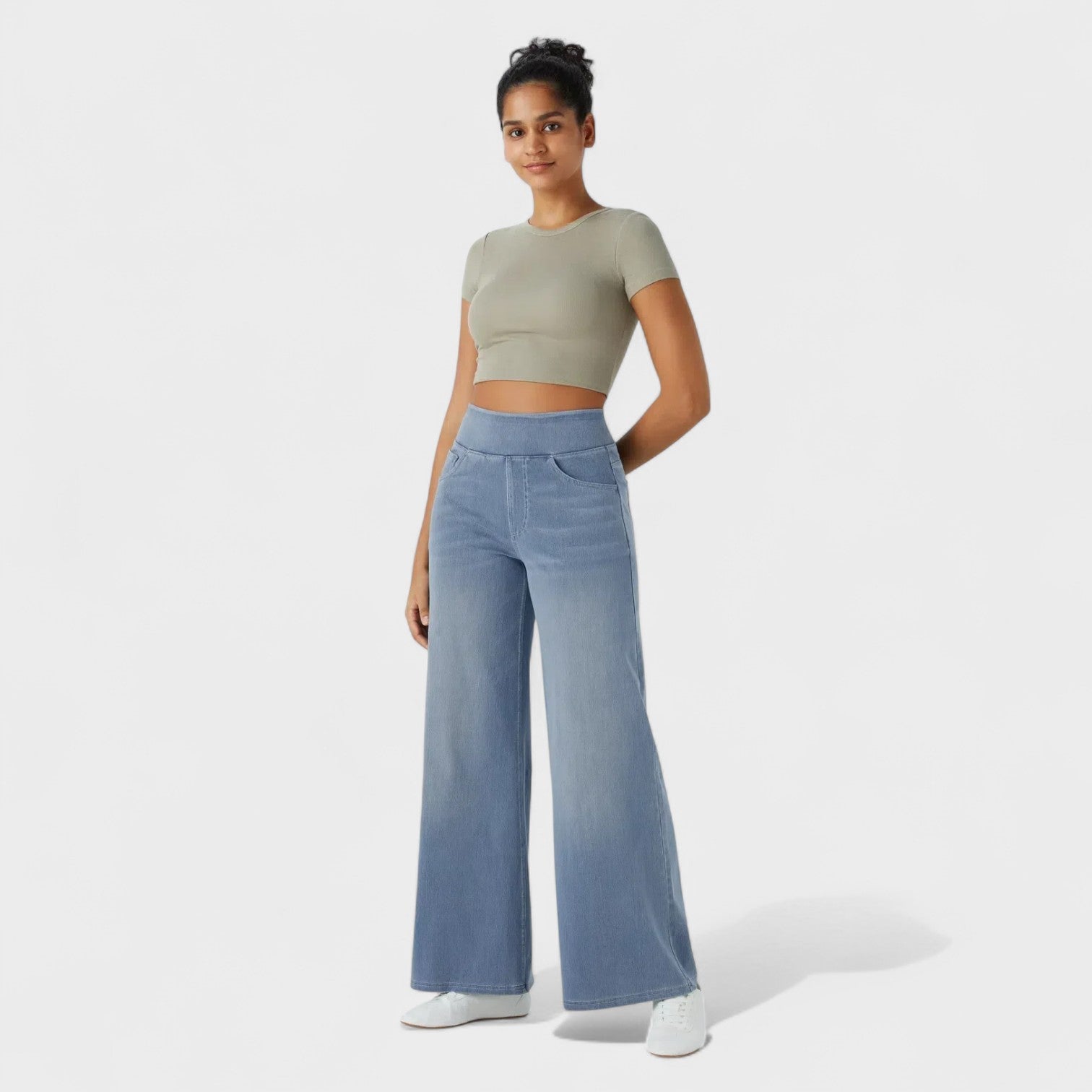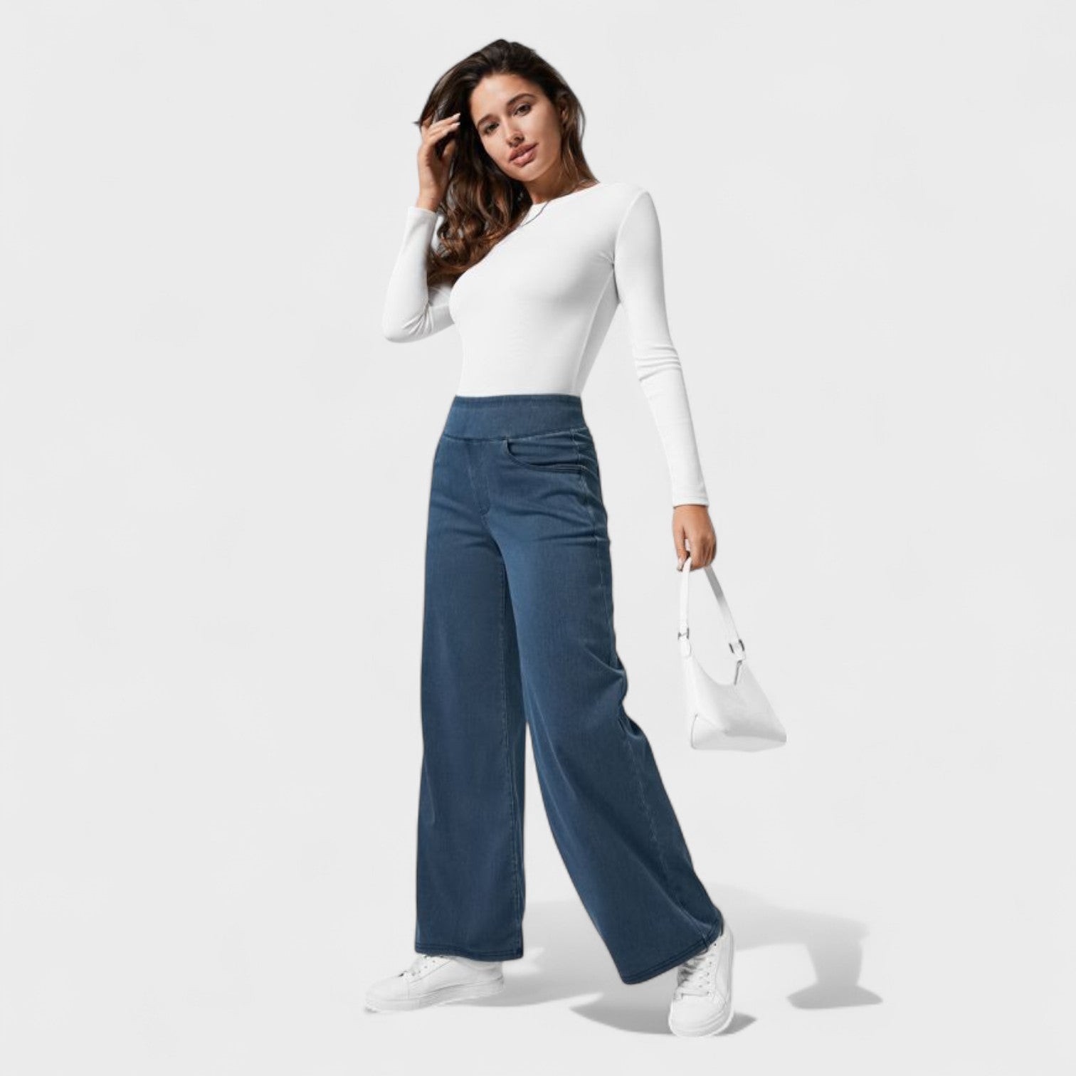Objevte dokonalou rovnováhu mezi pohodlím a elegancí s kalhotami Irene. Jejich design s širokými nohavicemi opticky zeštíhluje siluetu, ideální pro aktivní ženy, které chtějí vypadat skvěle každý den.