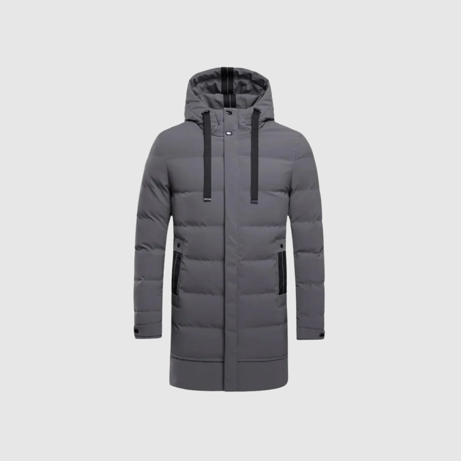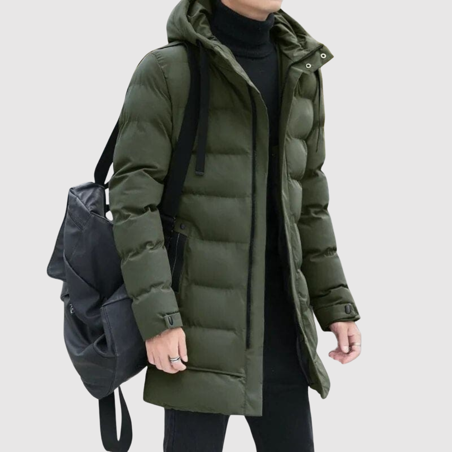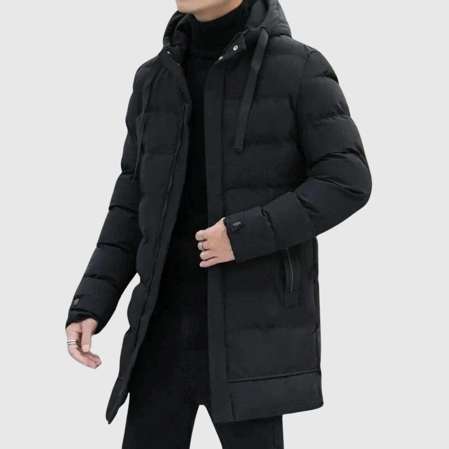 Marek – Dlouhá zimní bunda s kapucí" can be rewritten as "Marek – Dlouhá zimní bunda s kapucí pro chladné dny.