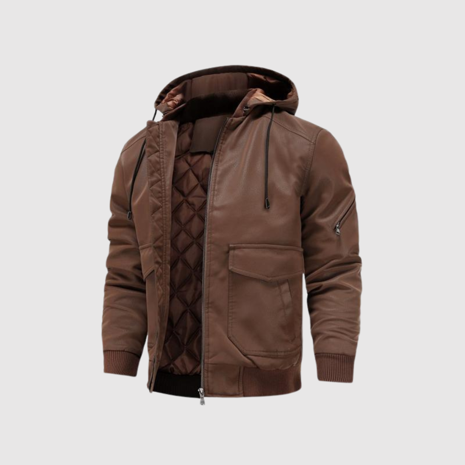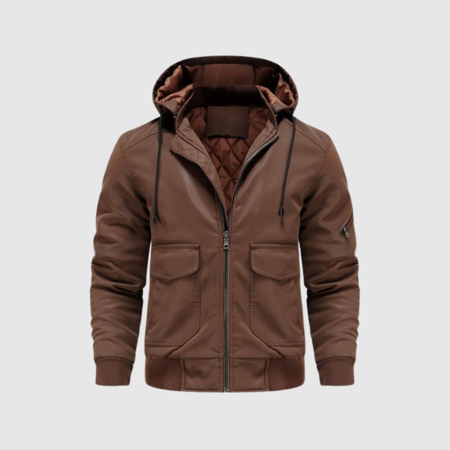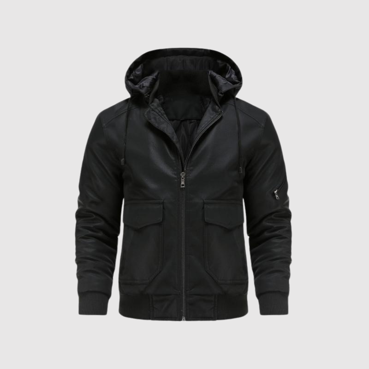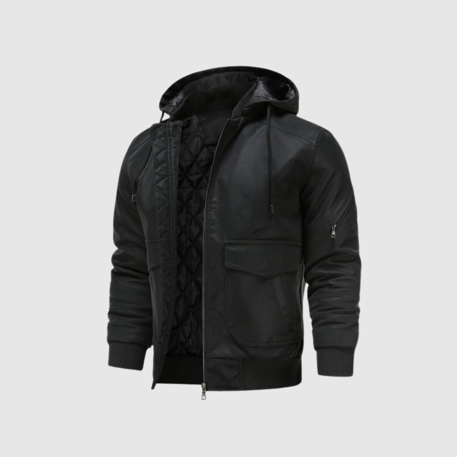 Tato bunda kombinuje funkčnost a mužský design. Vyrobena z vysoce kvalitní syntetické kůže, poskytuje teplo a pohodlí během chladných dnů, přičemž si zachovává svůj elegantní vzhled. Perfektní volba pro milovníky motorek nebo pro městský styl.