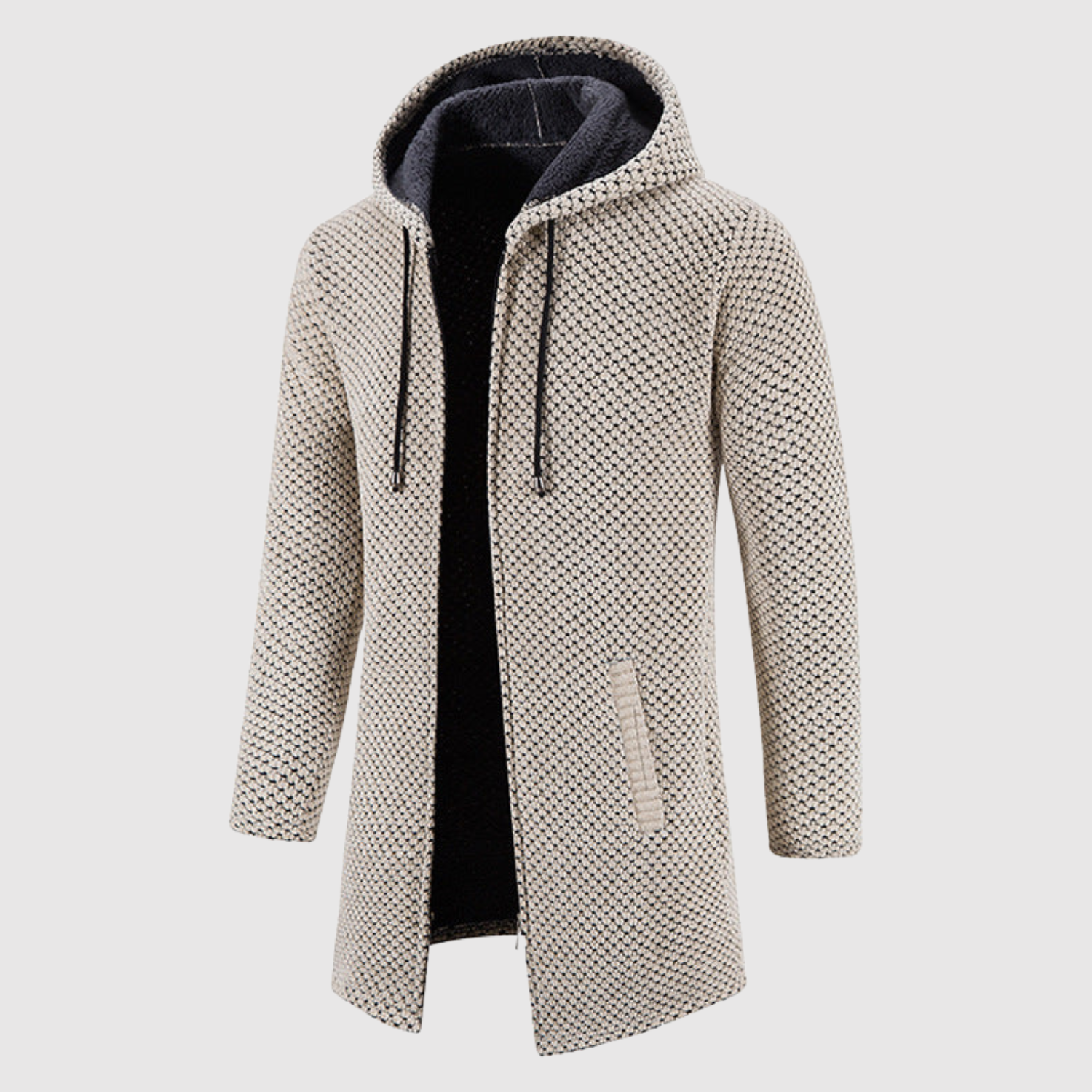 Marek – Vlněná zimní bunda s kapucí a páskem