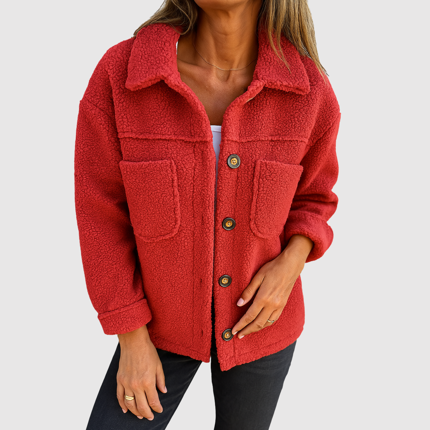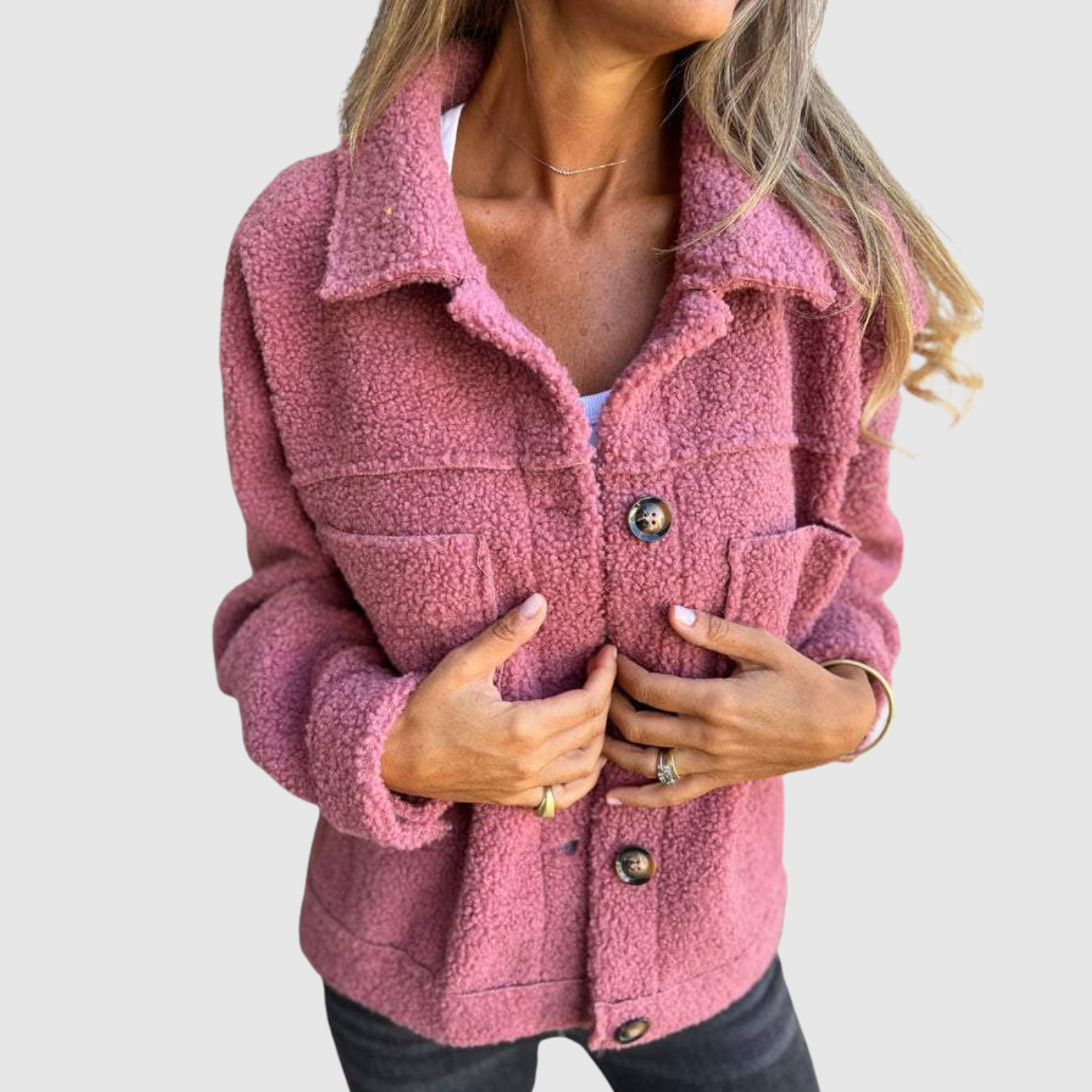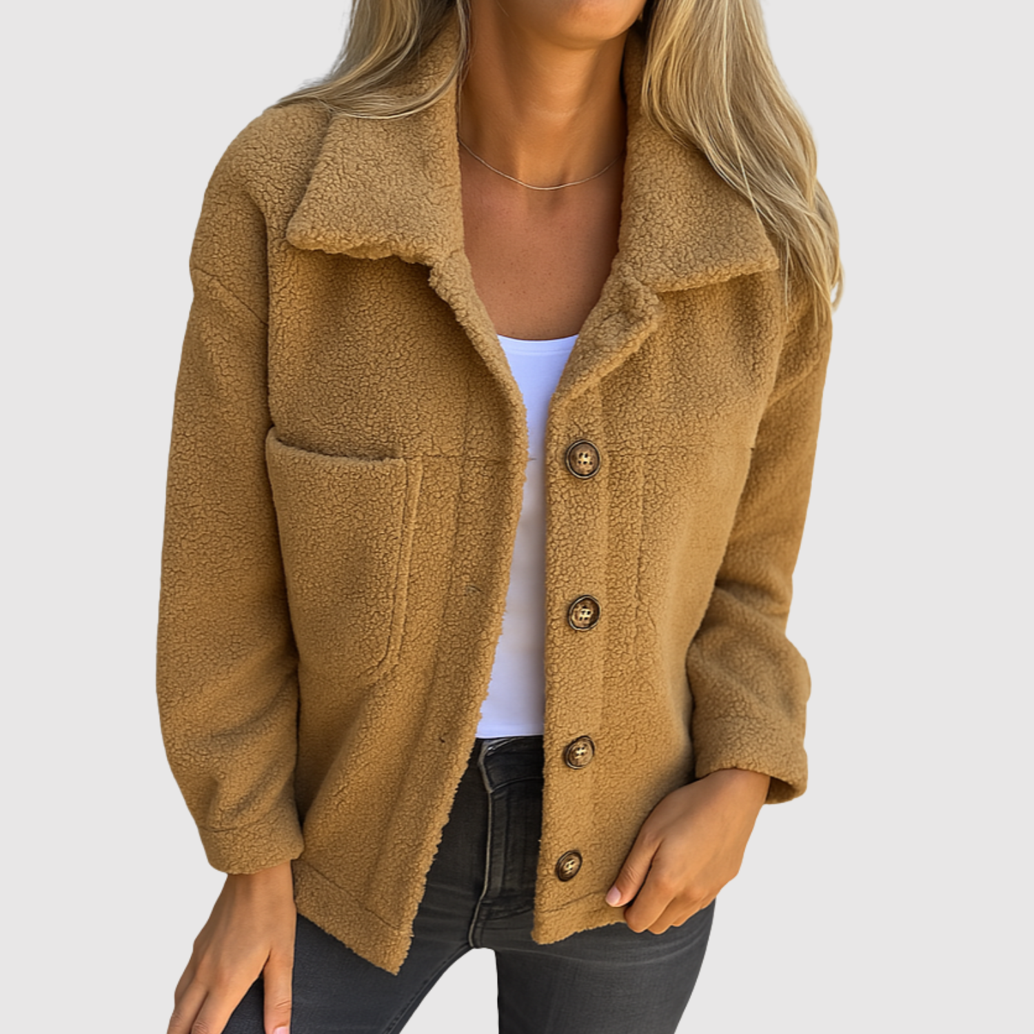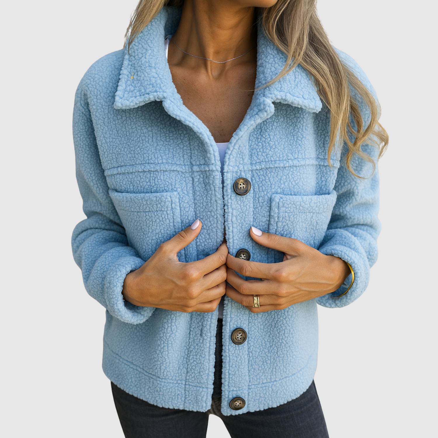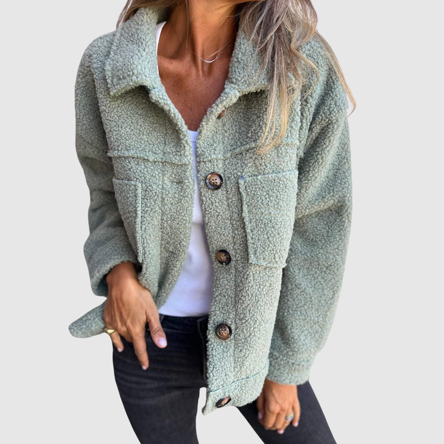 Elena - Dámská teddy bunda s kapsami a knoflíky