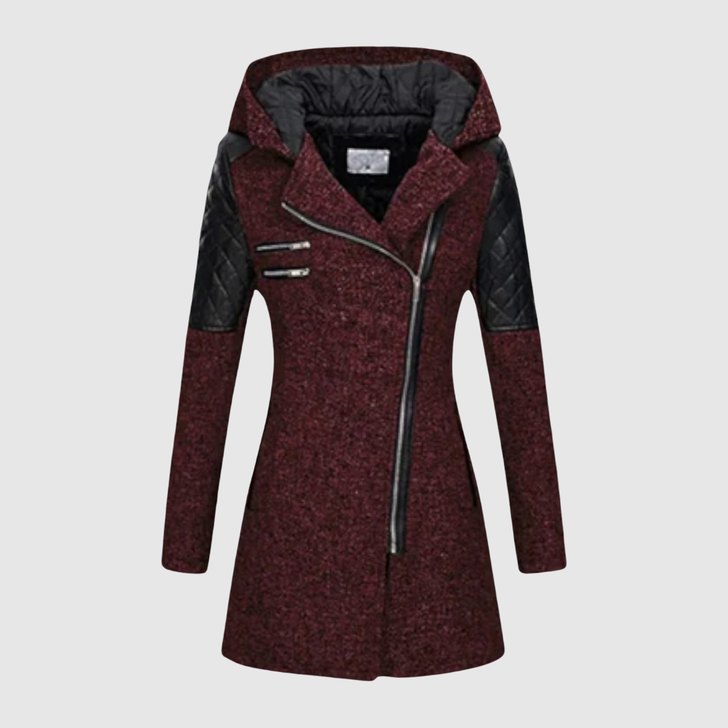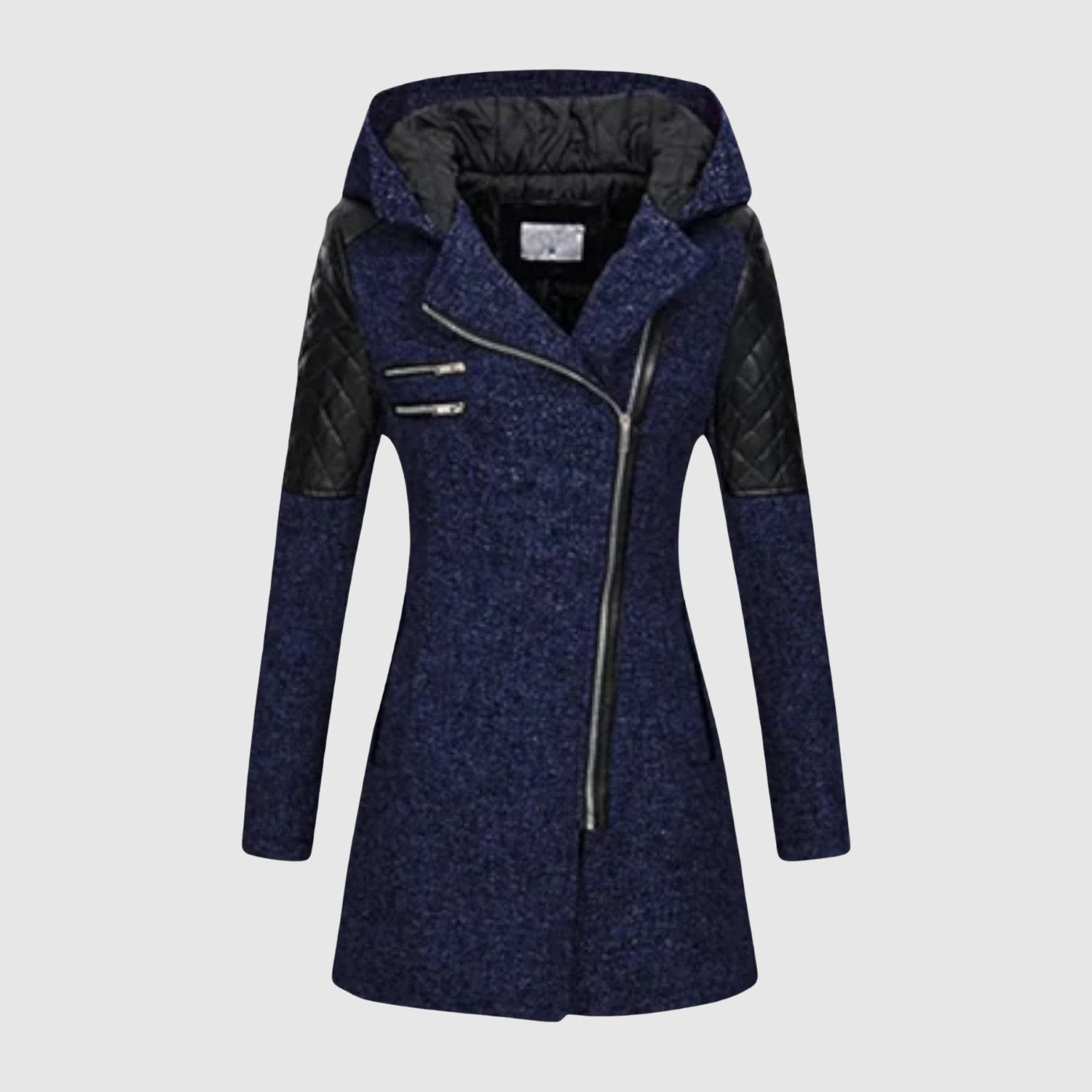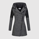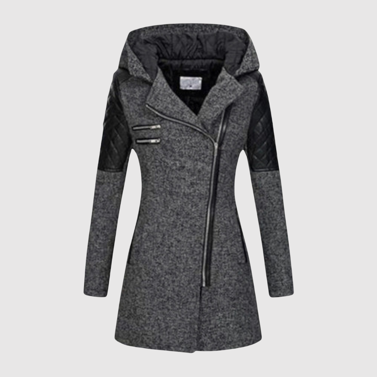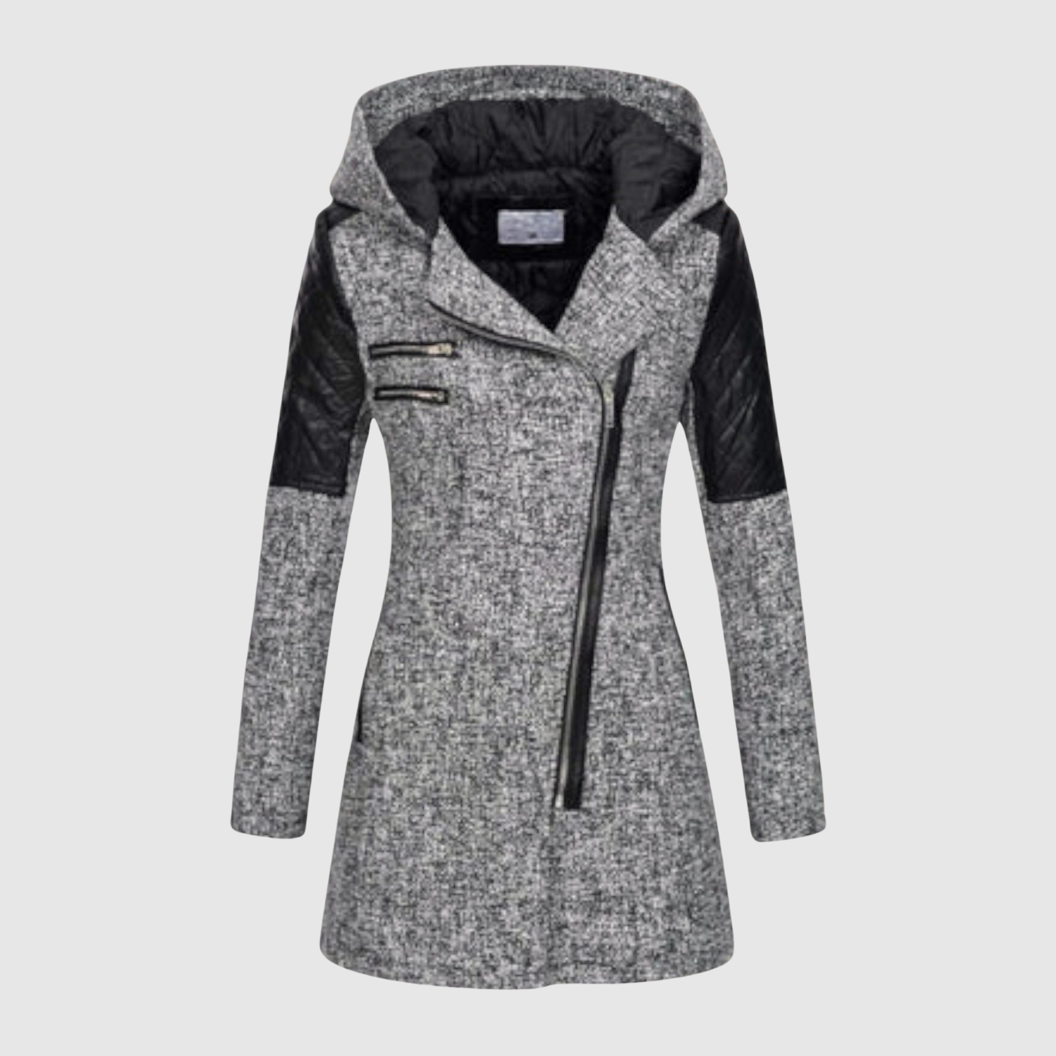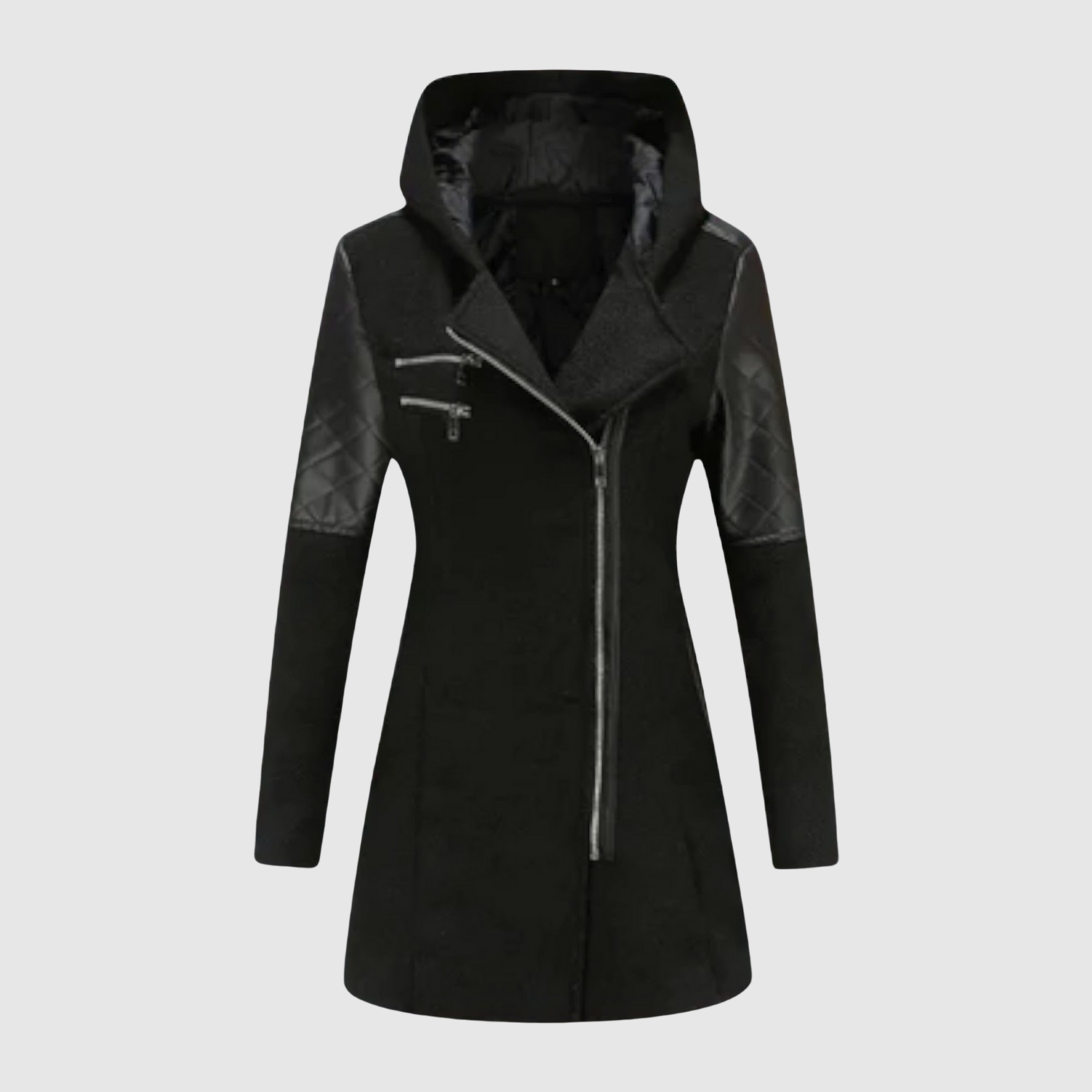 Tato dlouhá bunda spojuje moderní design s praktickými detaily. Asymetrický zip a tvarovaná silueta dodávají stylový vzhled, zatímco podšívkový materiál a kapuce zajišťují teplo a pohodlí v chladném počasí.
