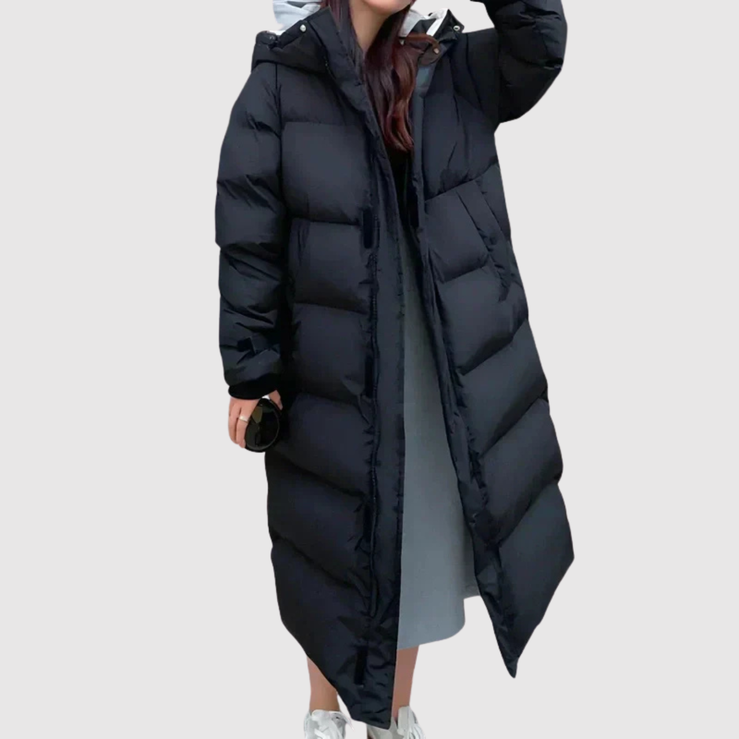 Udržujte se v teple a stylu i v nejchladnějších dnech s tímto dlouhým vatovaným kabátem. S tlustou podšívkou a ochrannou kapucí nabízí efektivní izolaci proti chladu a větru.
