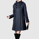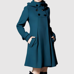 Tento kabát kombinuje retro inspiraci s moderním komfortem. Elegantní A-čkový střih zajišťuje lichotivou siluetu, zatímco dvojité knoflíky a boční kapsy přidávají jak styl, tak funkčnost. Perfektní pro každodenní nošení i na sofistikovanější příležitosti.