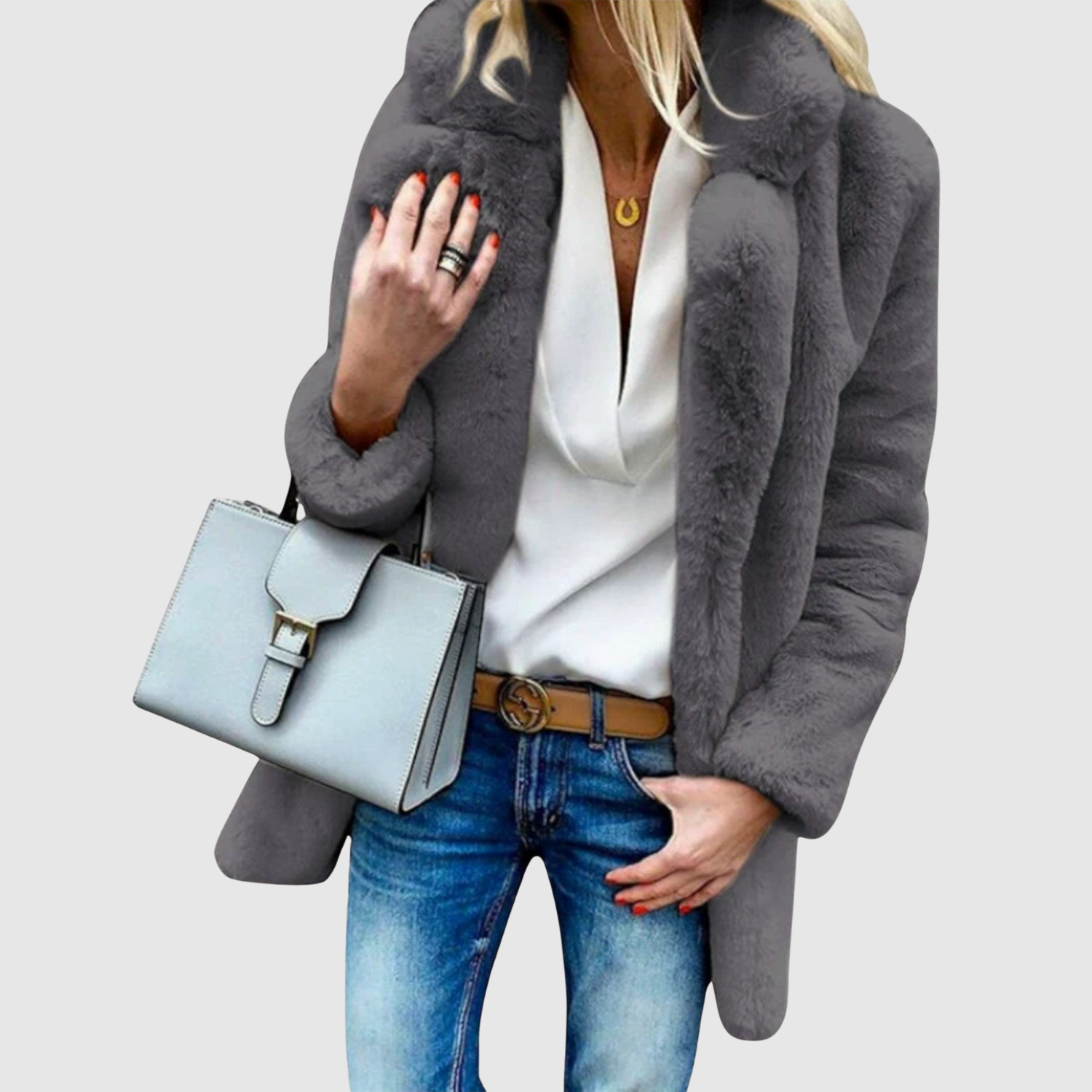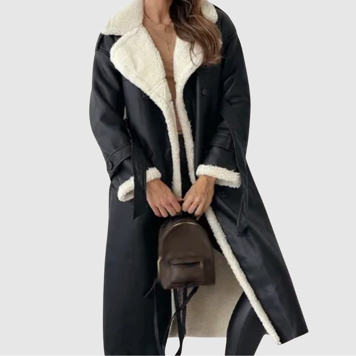 Jelena – Klasický dlouhý kabát s vlněným vzhledem