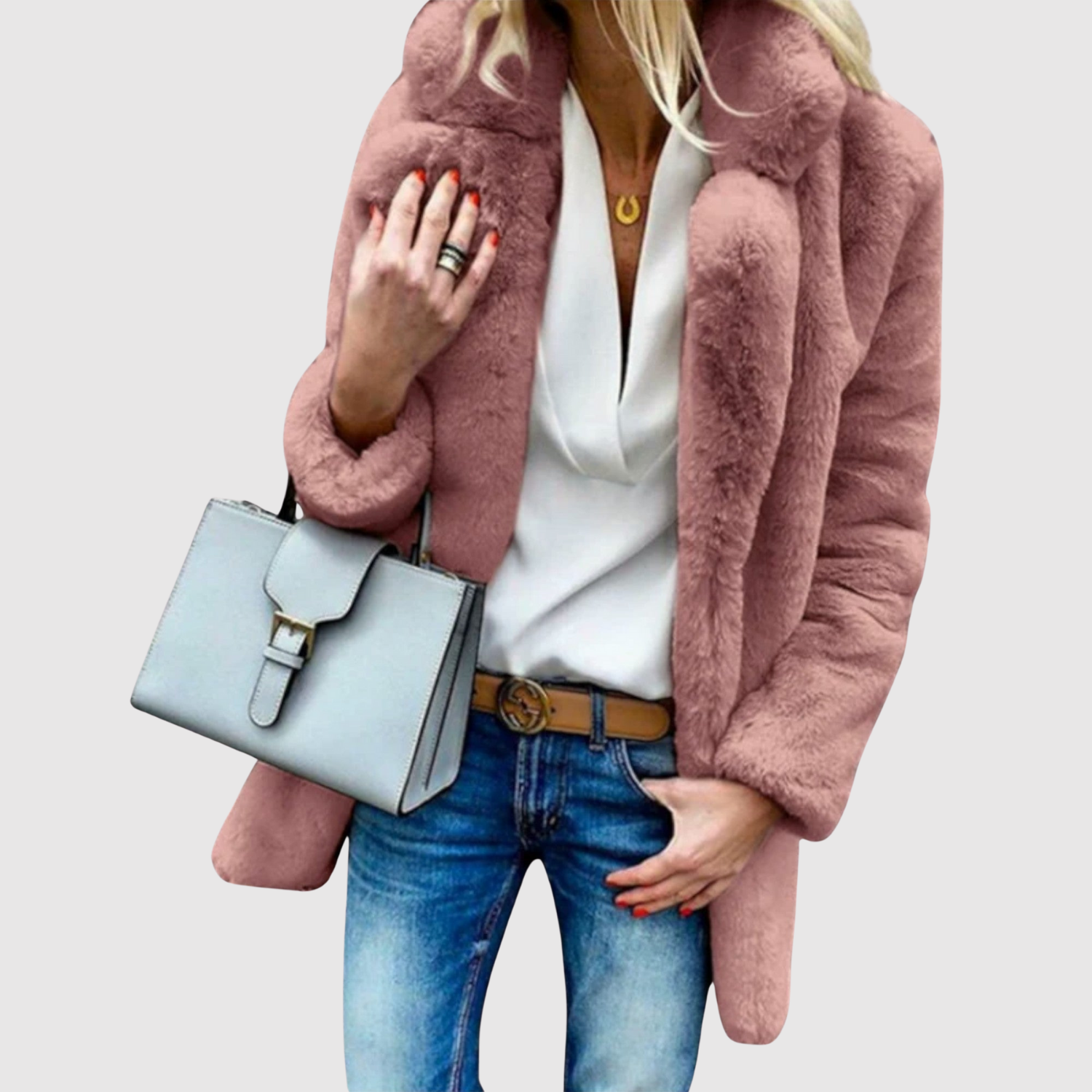 Jelena – Dlouhý kabát s efektem peří