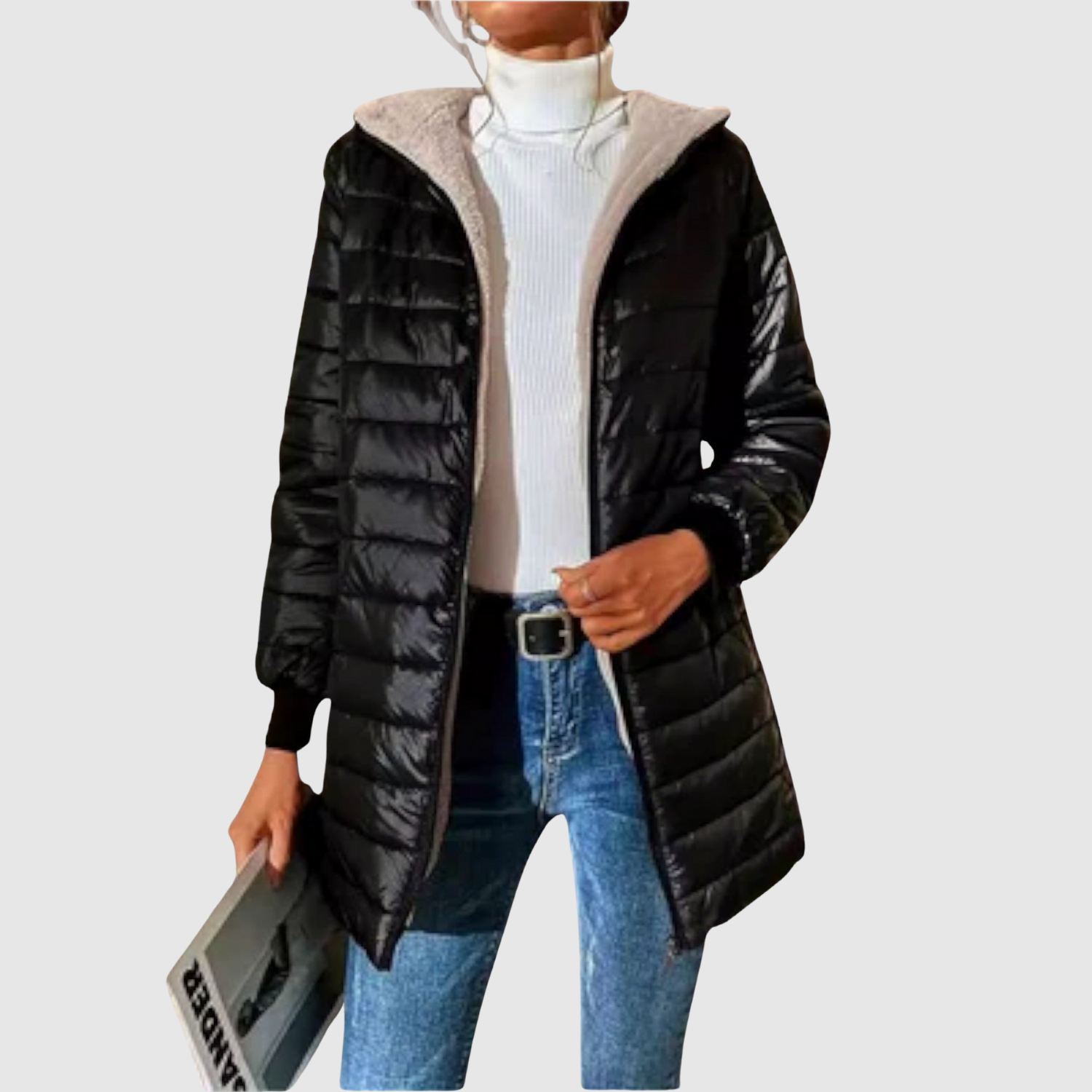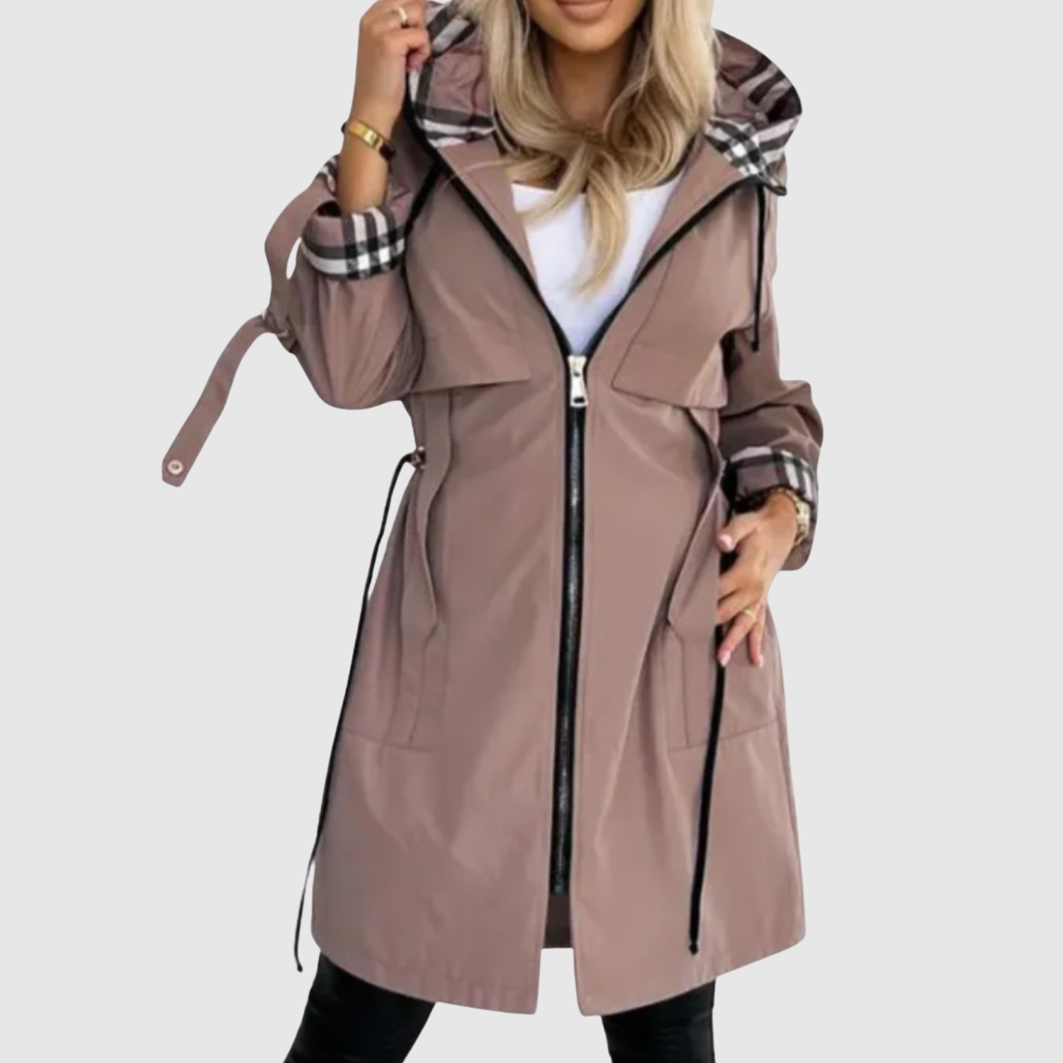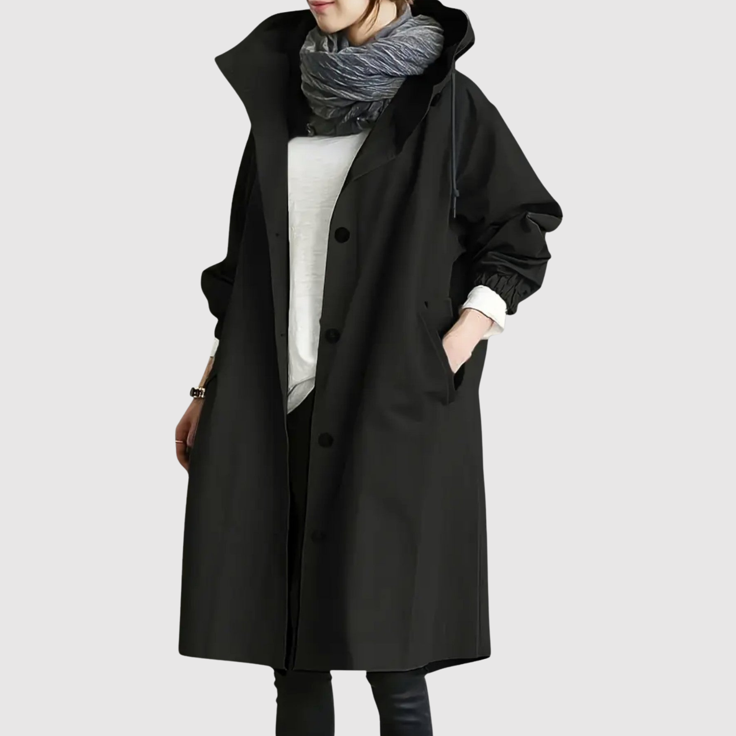 Jelena – Elegantní kabát s kapucí a moderními detaily