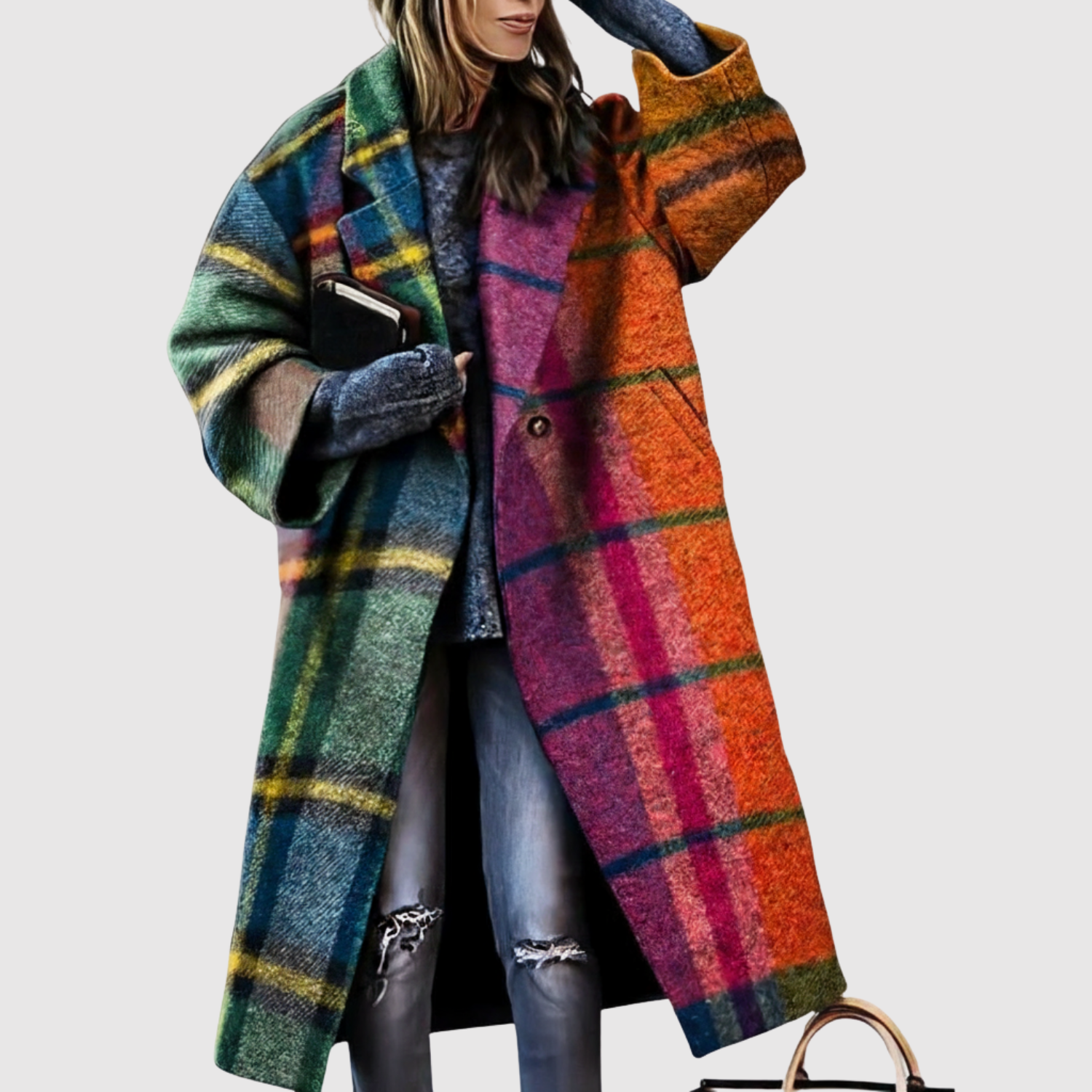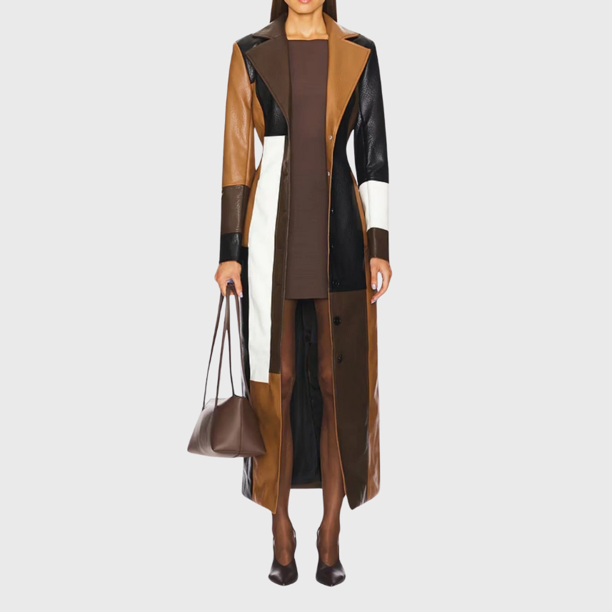 Jelena - Dlouhý kabát s trendy kontrastním vzorem