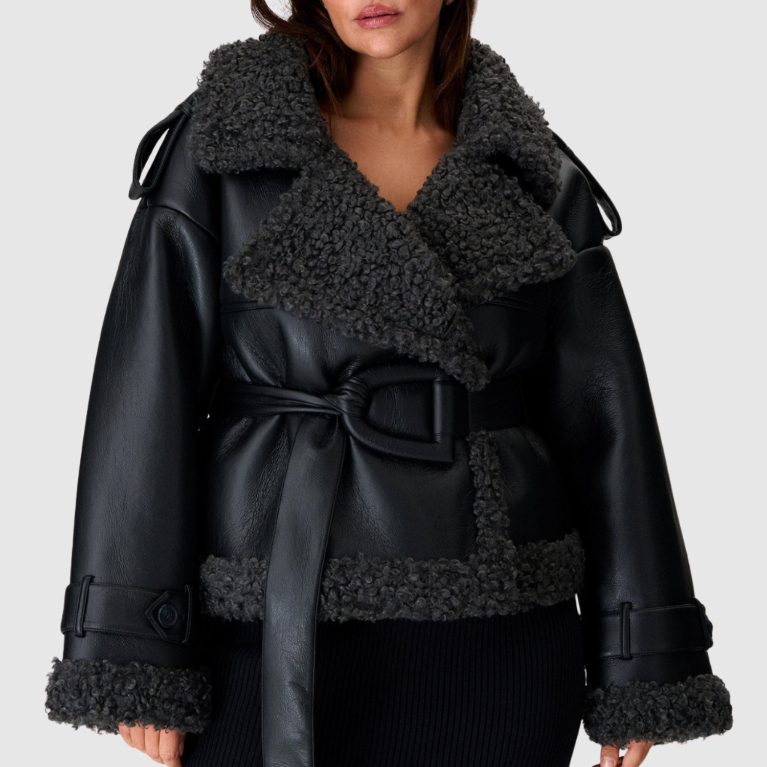 Jelena - Krátká bunda s páskem a hřejivou podšívkou