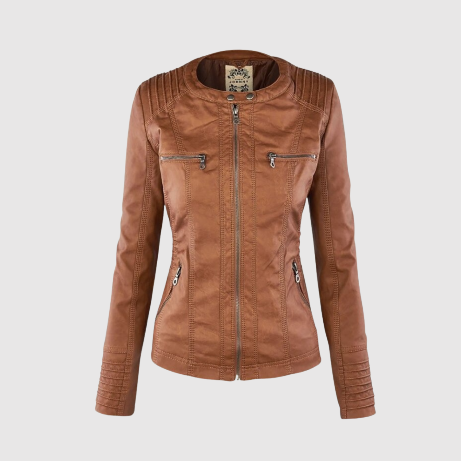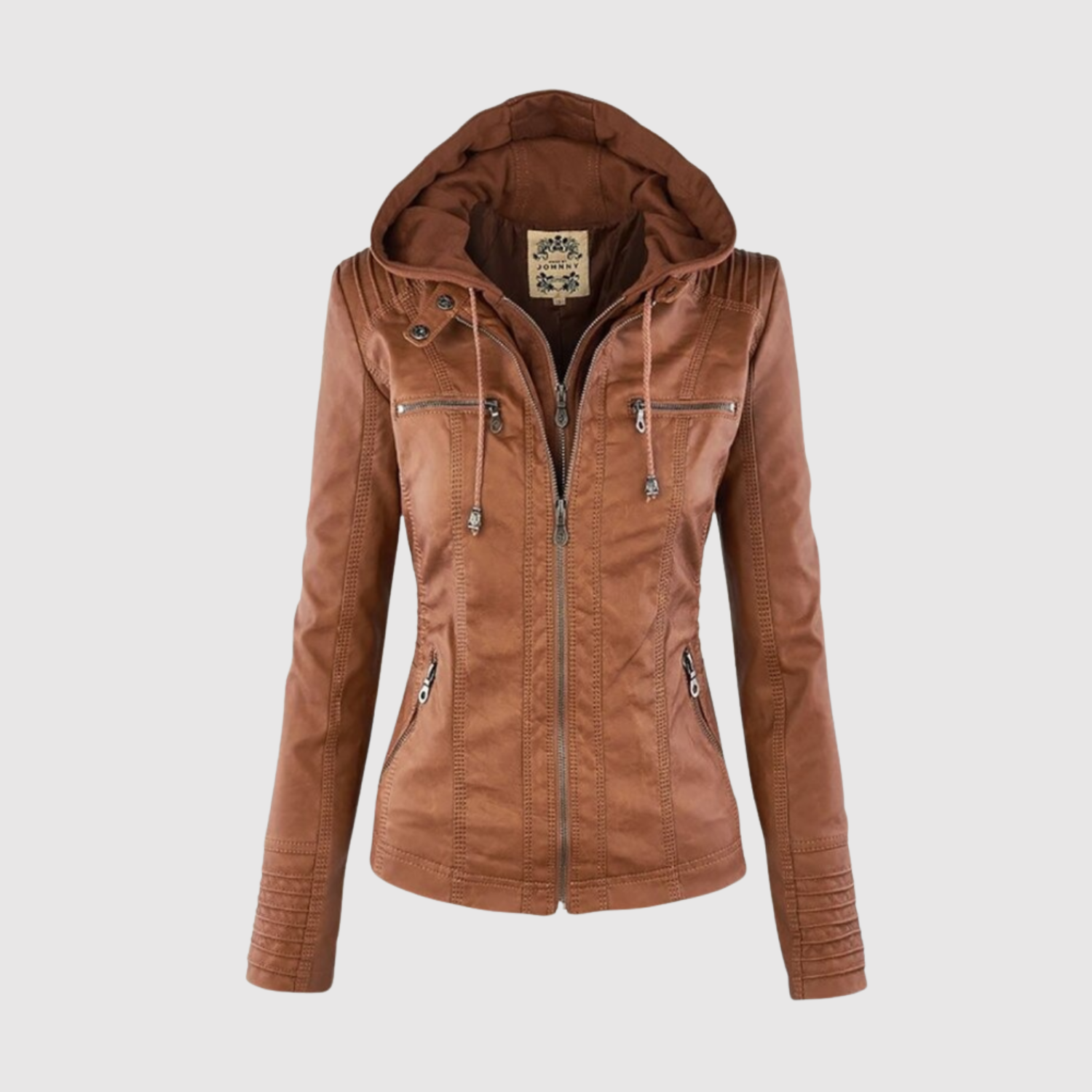 Jelena - Dámská koženková bunda s kapucí a zipy