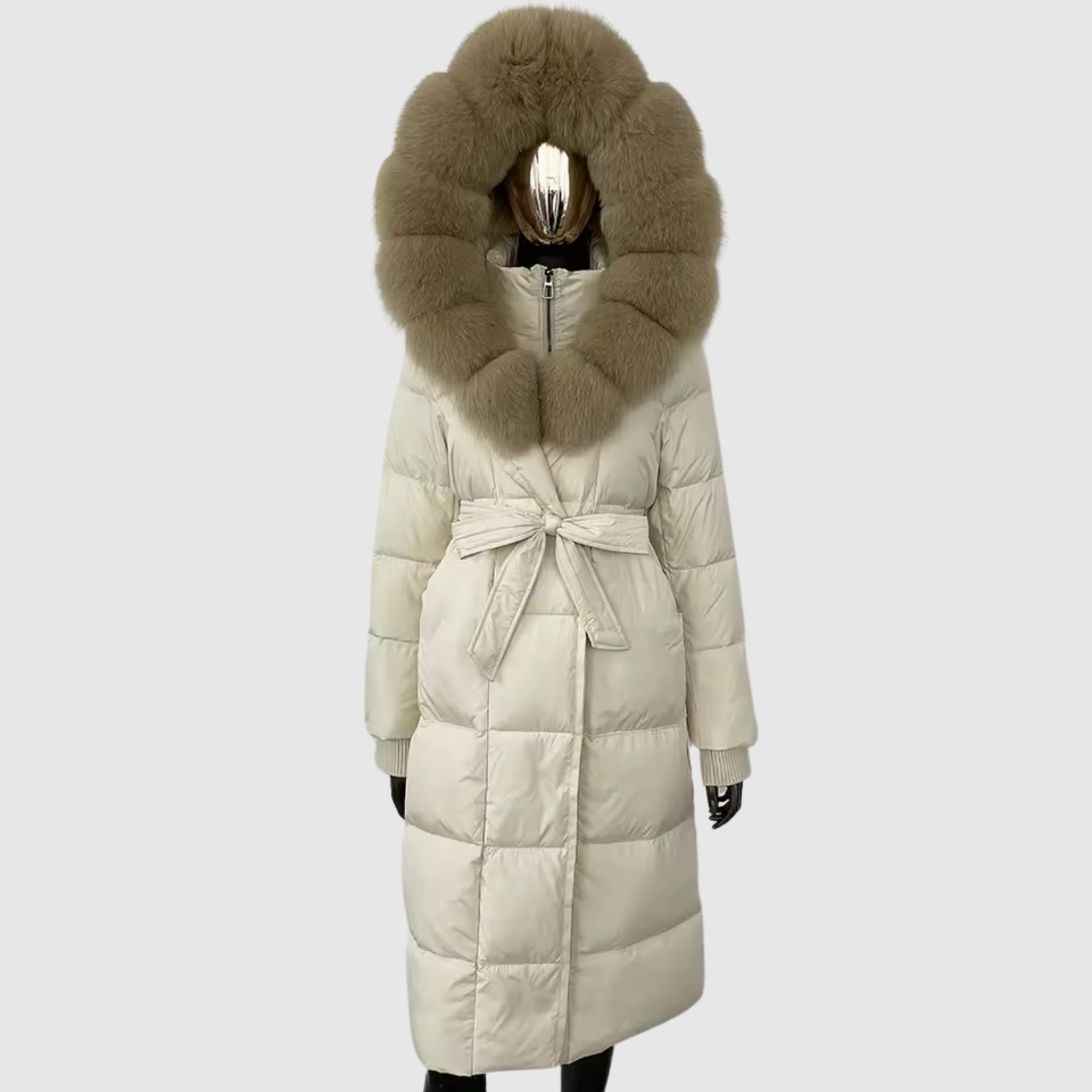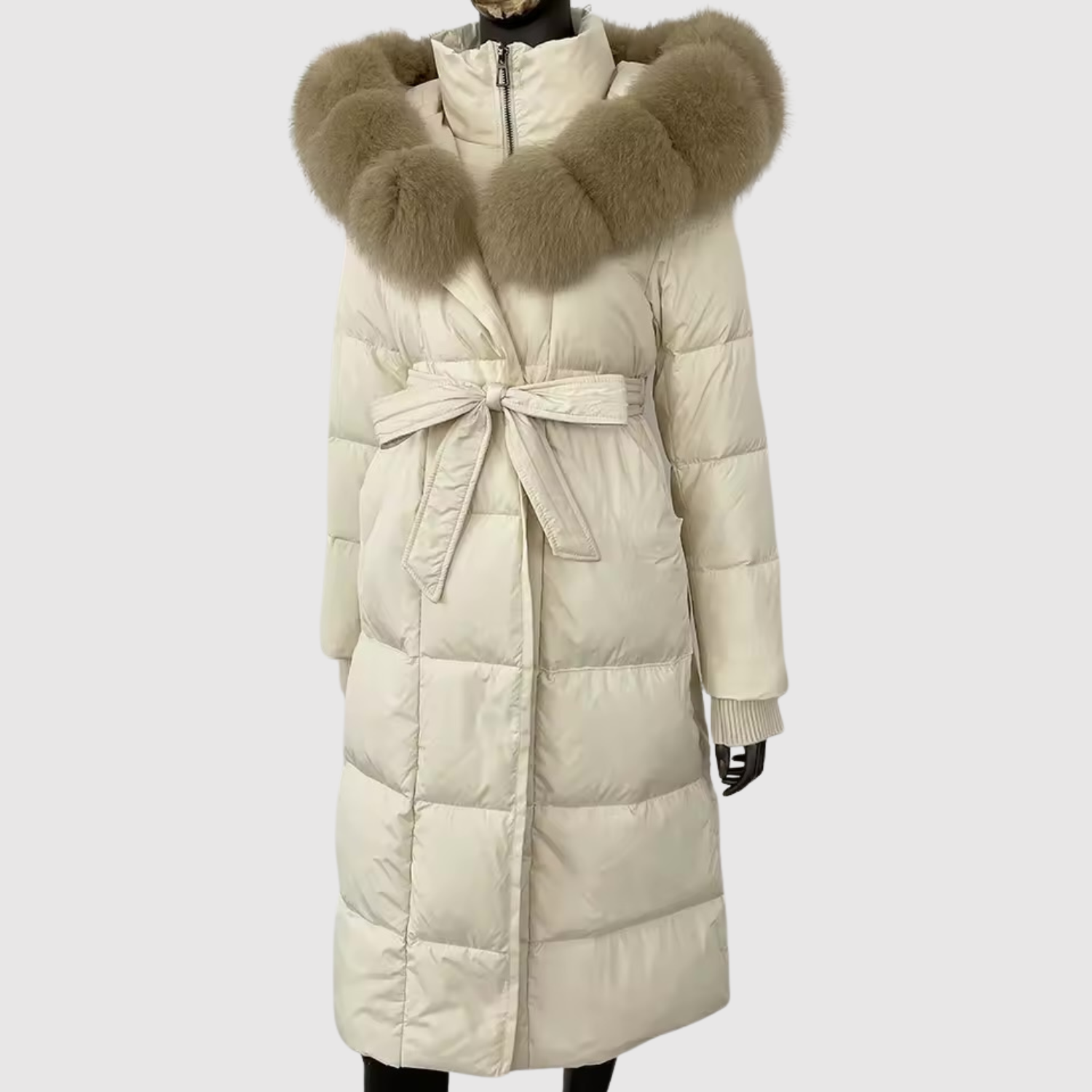Jelena - Elegantní dlouhá zimní bunda s kožešinovou kapucí