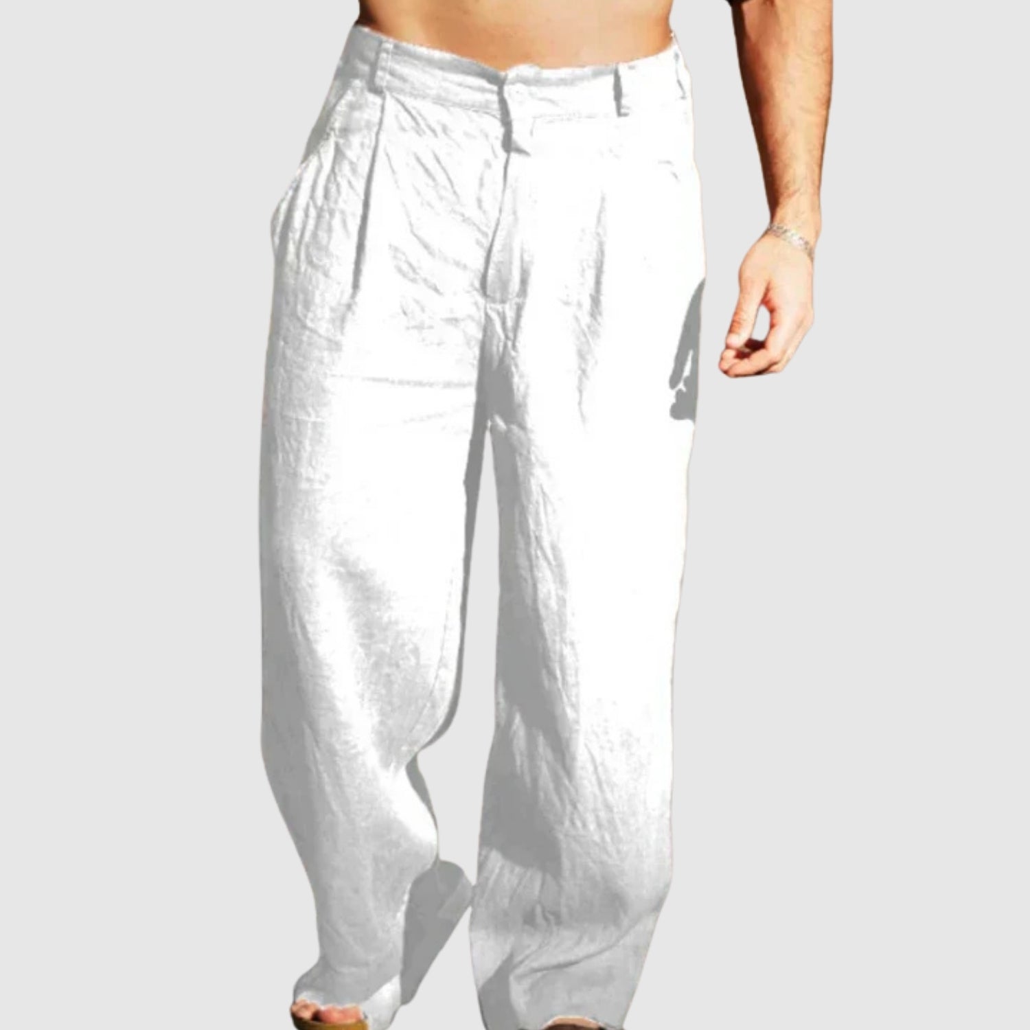 Leo – Letní lněné kalhoty s volnými nohavicemi